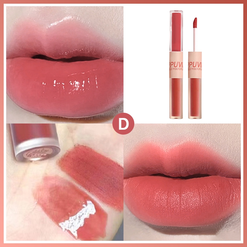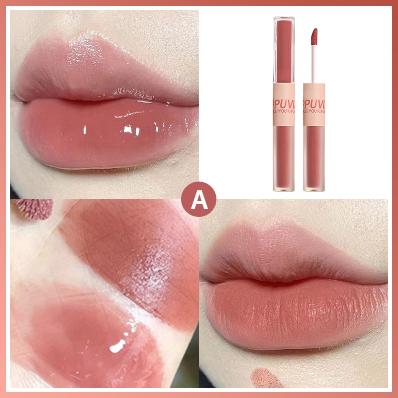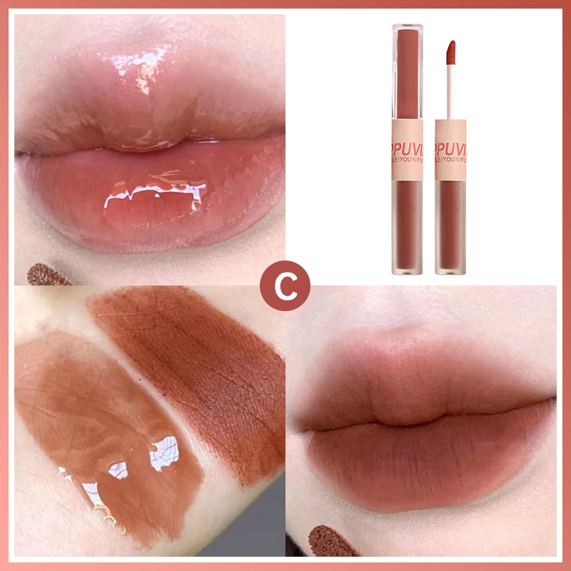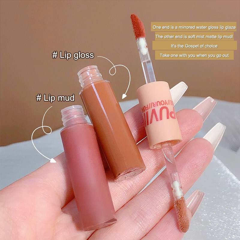 []Cappuvini 2 In1 Mud Lipstick Lip Cream Lip Gloss Dua Sisi Matte Lipstick Glossy Lipstik-Ss
