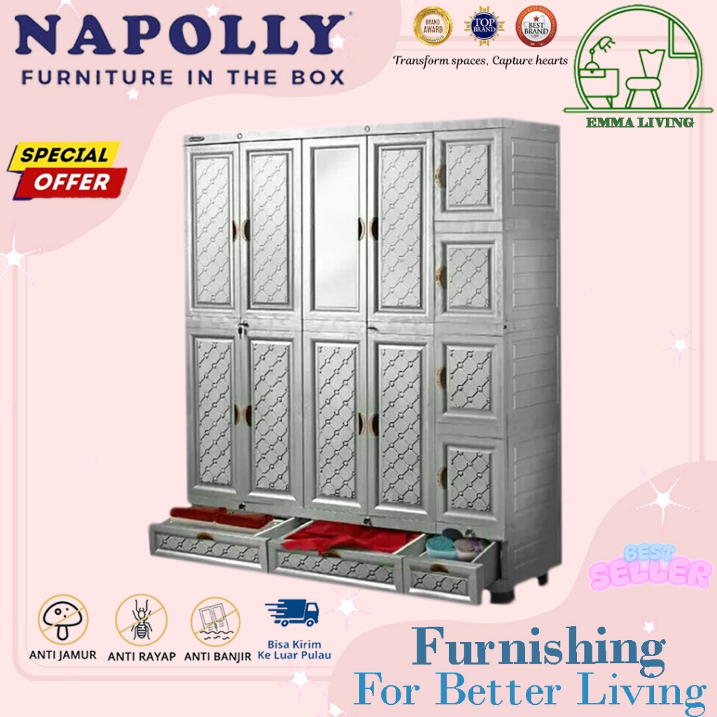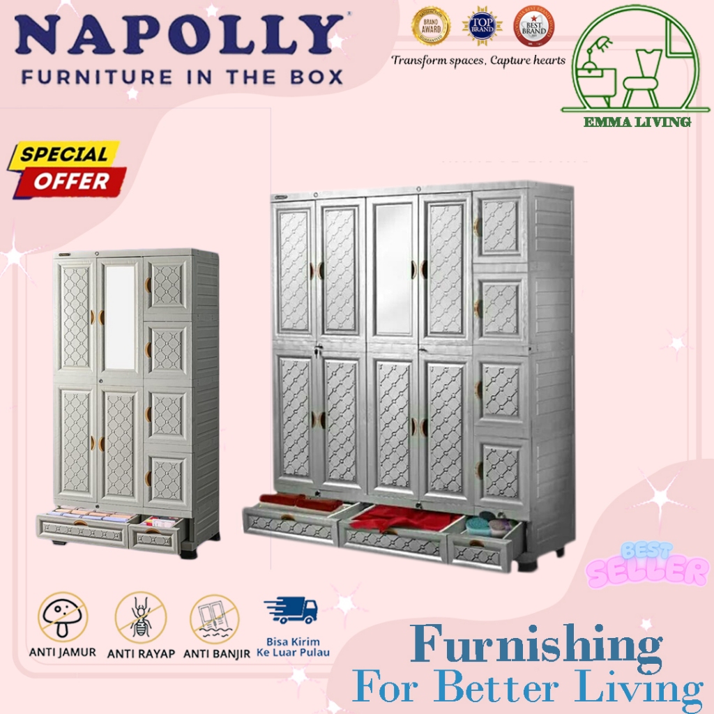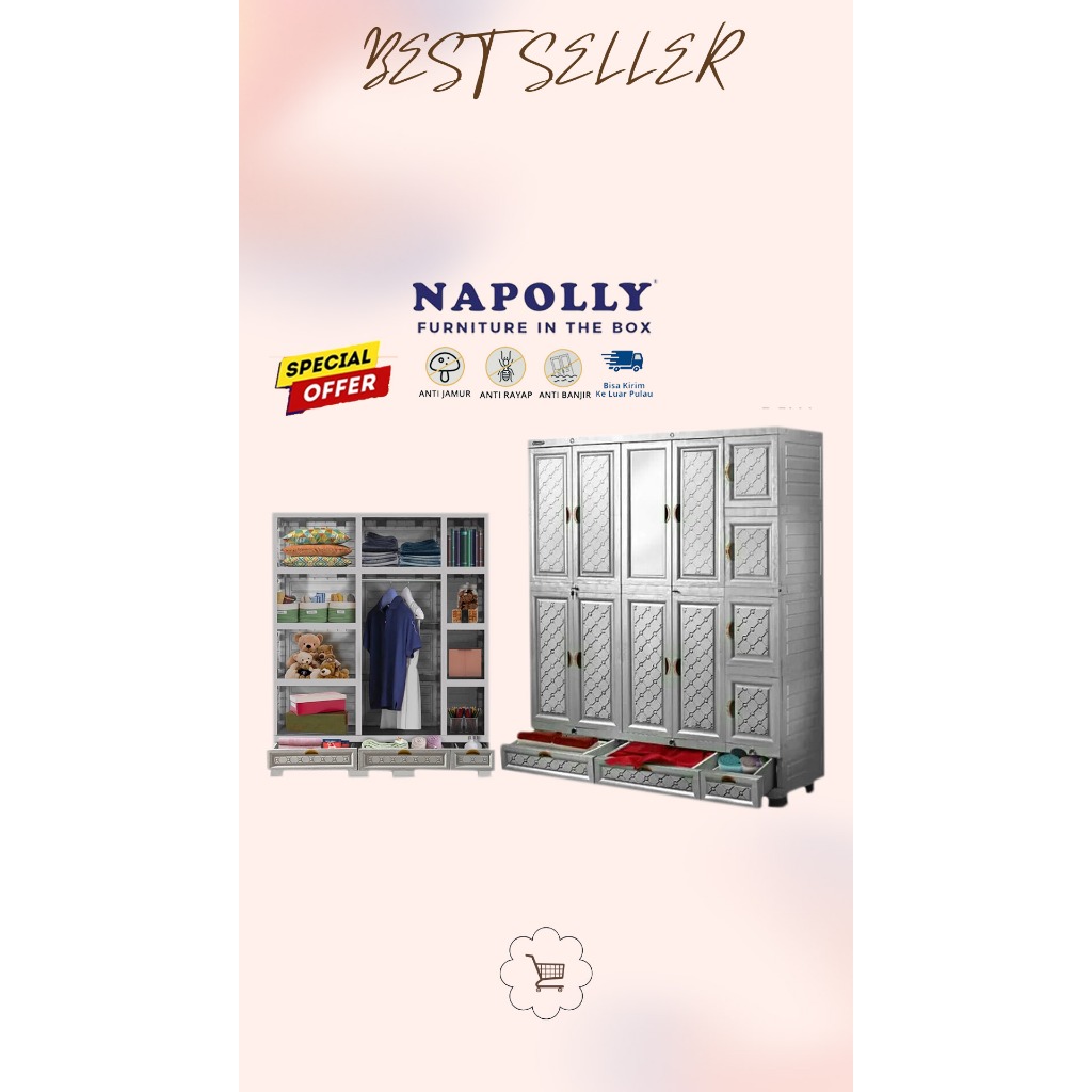 Lemari pakaian plastik NAPOLLY PINTU MIDICAB DC SUPER JUMBO BESAR GANTUNG minimalis