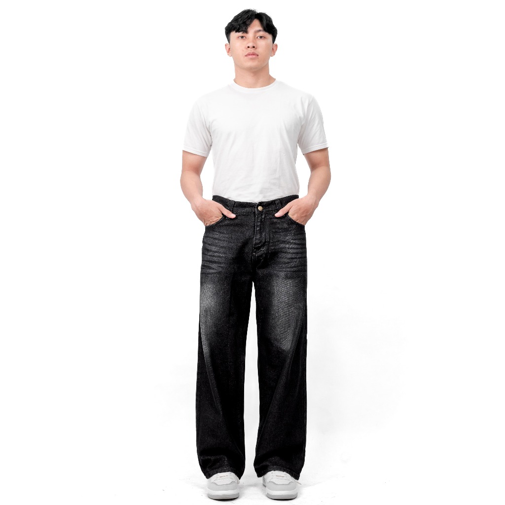 Gizmo - Celana Jeans Wide Leg Wisker Lebar Gombrong Skena Black Wisker pria loose fit jumbo big keren Bahan Denim
