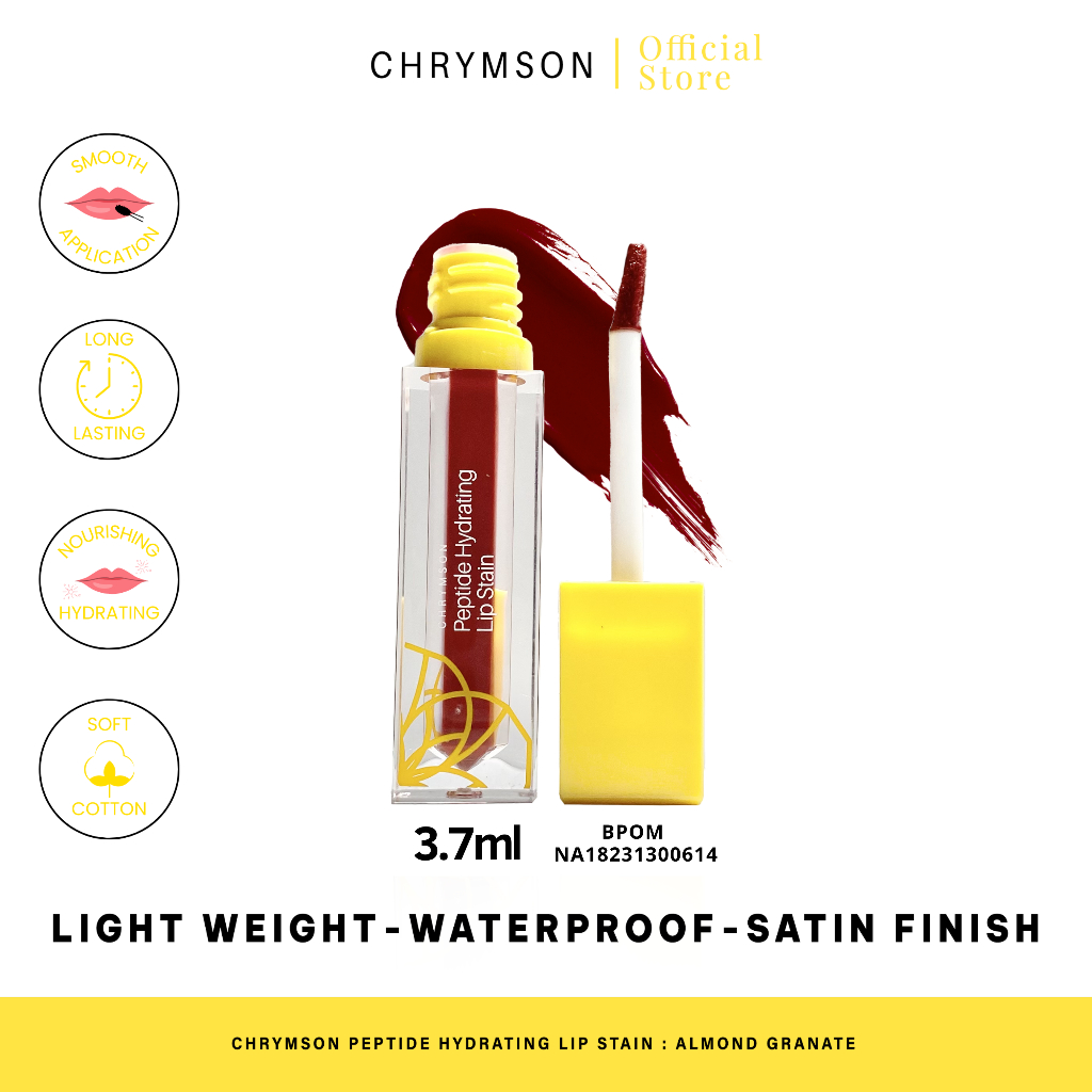 [FREE CUSHION] Chrymsie "Almond Granate" Peptide Hydrating Lip Stain Chrymson - Ringan, Waterproof, Nontransfer, Satin Finish