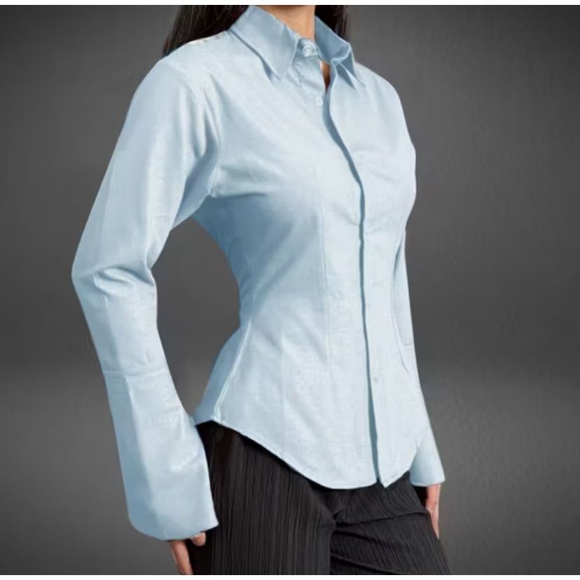 Lova Slim Fitted Striped Long Sleeve Shirt//Atasan Wanita Motif Salur dan los//Kemeja Salur dan los Lengan Panjang