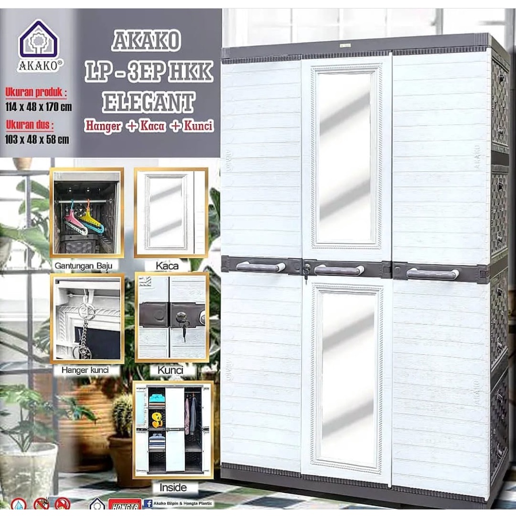 AKAKO Lemari Pakaian Plastik Gantung Jumbo Kaca Kunci motif Elegant Akako Anti Rayap TERLARIS BERGARANSI