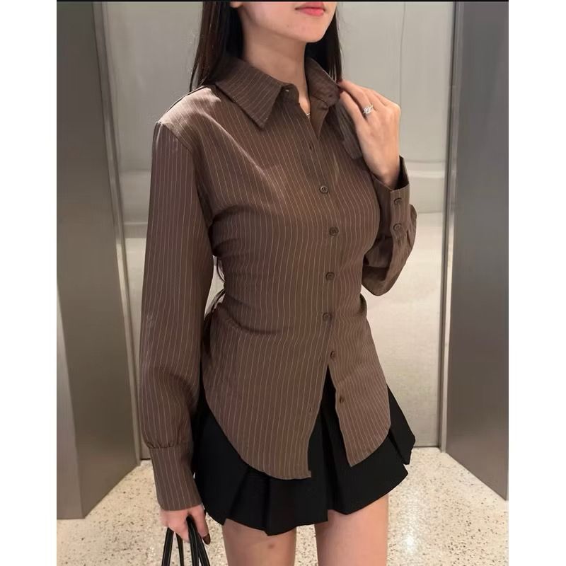 Luna Stripe Kemeja Fitted / Atasan Wanita Stripe Salur Basic