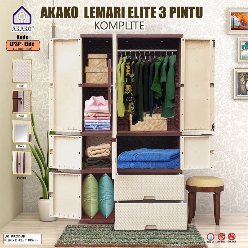 AKAKO Lemari Pakaian 3 Pintu Jumbo Gantung + Laci + Kaca Motif Elite Elegan