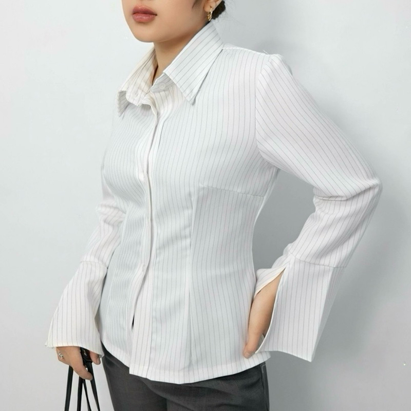 Radeya - Magia Fitted Shirt | Striped Shirt | Kemeja Wanita Longsleeve | Atasan wanita Slim Fit