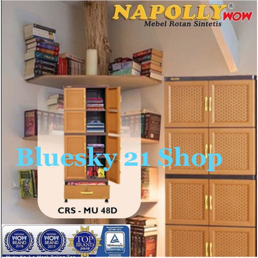 LEMARI PLASTIK NAPOLLY 4 SUSUN DENGAN LACI CRS MU48D MOTIF ROTAN MURAH