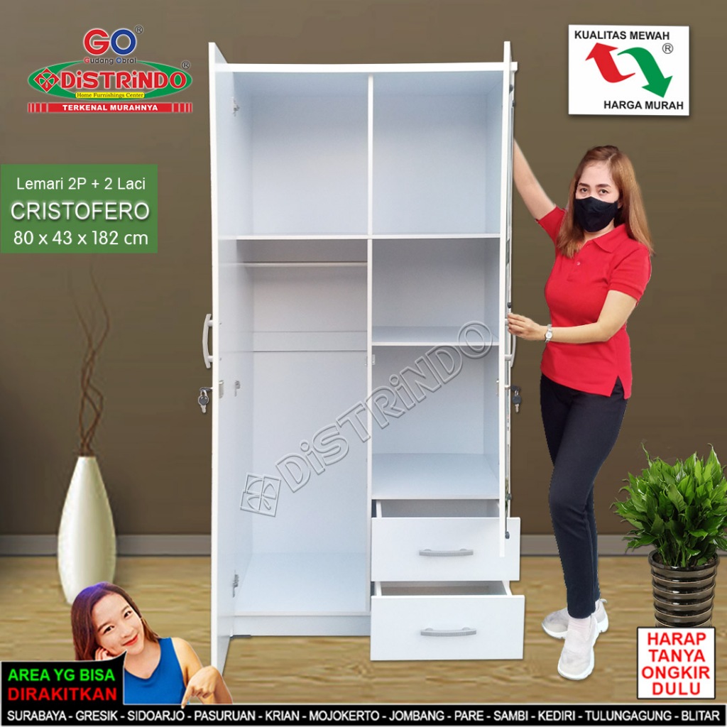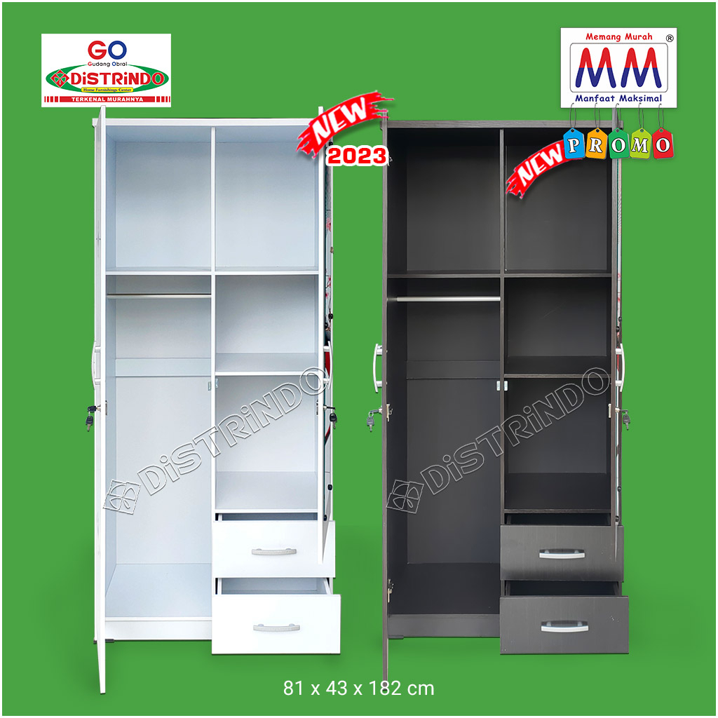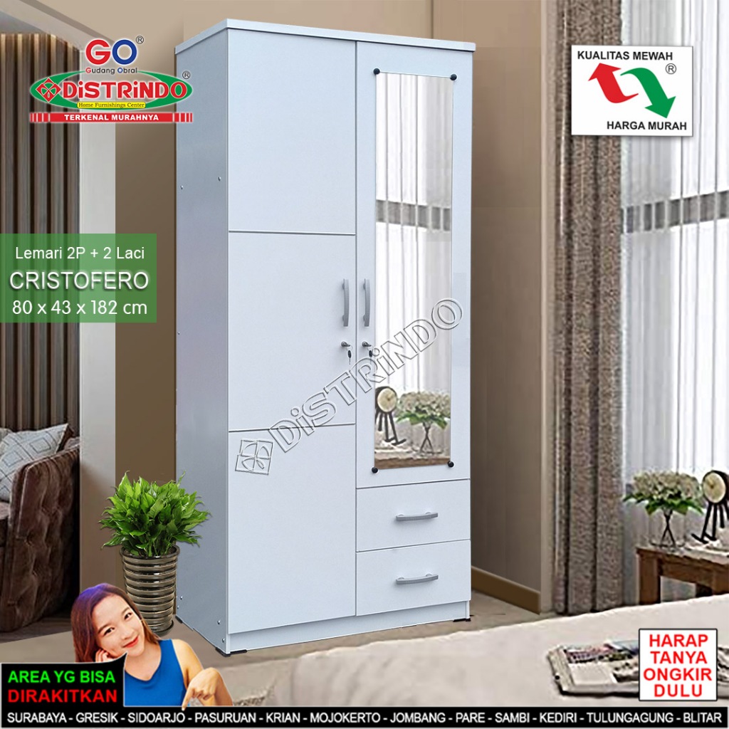 Distrindo Lemari Pakaian KAYU 2 Pintu Cermin Panjang + 2 Laci Kualitas Terjamin