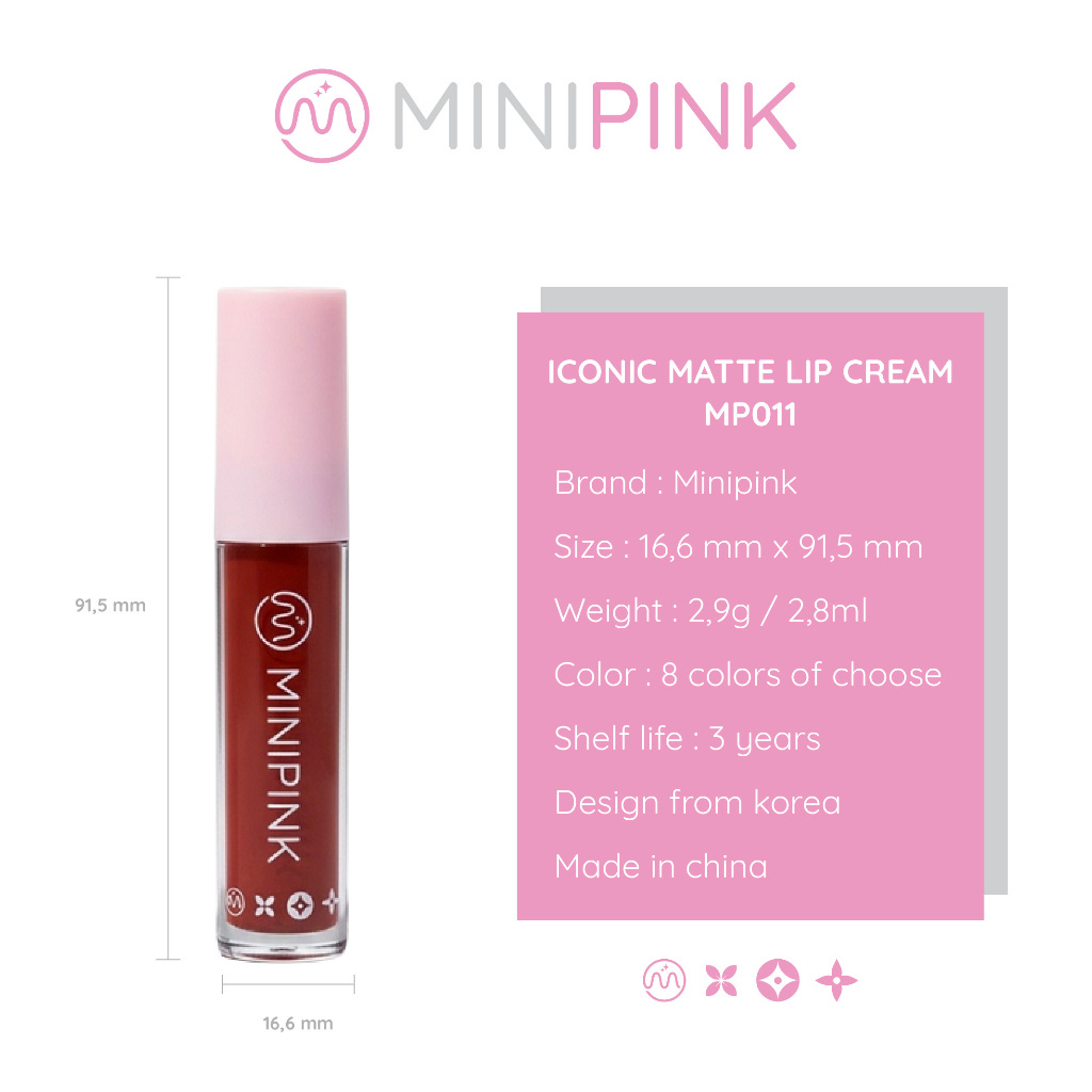 MINIPINK Iconic Matte Lip Cream Lipstick Lembut Creamy Matte Finish 8 Warna Tahan Lama MP011
