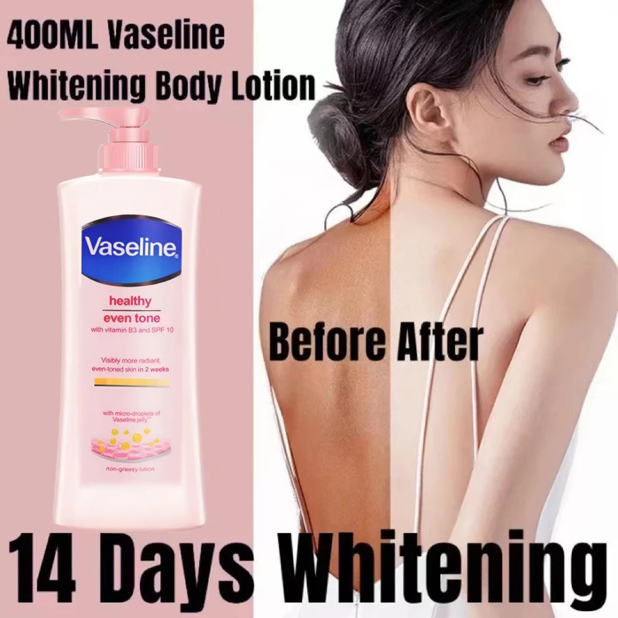 Vaseline lotion 400ML Healthy Even Tone Lotion Pemutih Badan Permanen Lotion Kulit Kusam Whitening Moisturizing Brightening Skin Lotion Tubuh Pemutih Vaseline