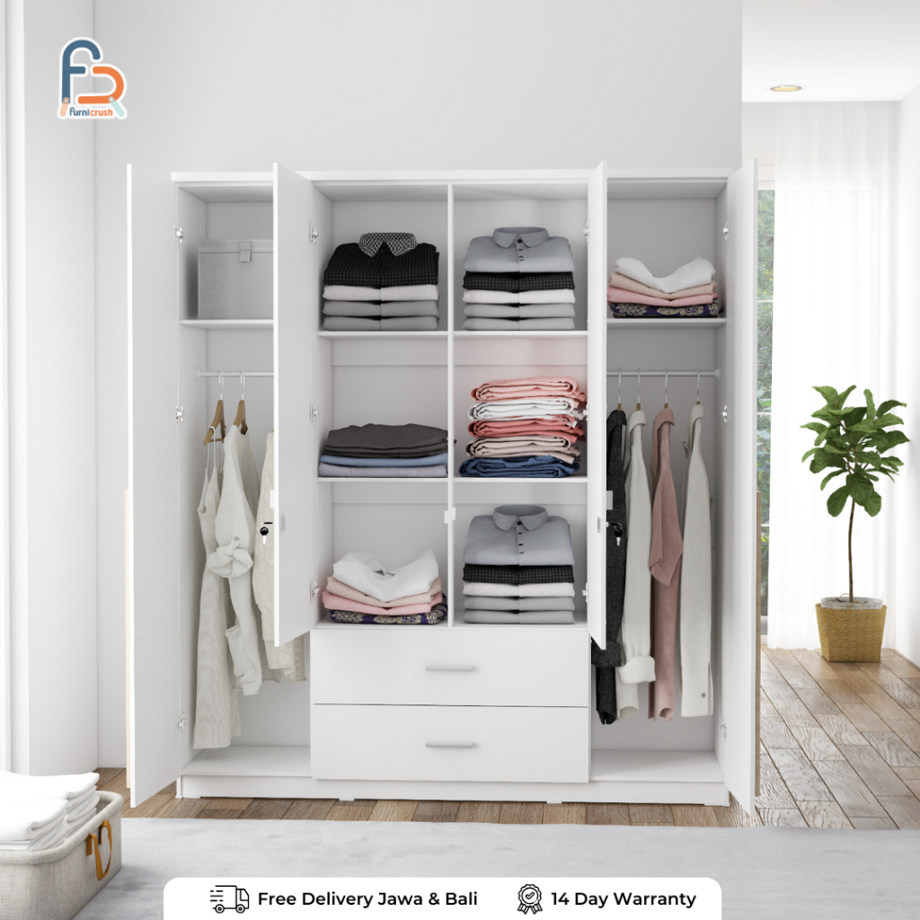 Furnicrush Lemari Pakaian 4 Pintu Lemari Full Rak Lemari Putih Lemari Full rak dan Laci CAMILLE WDF 401