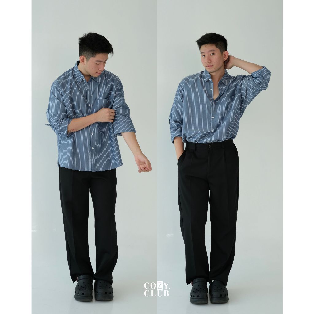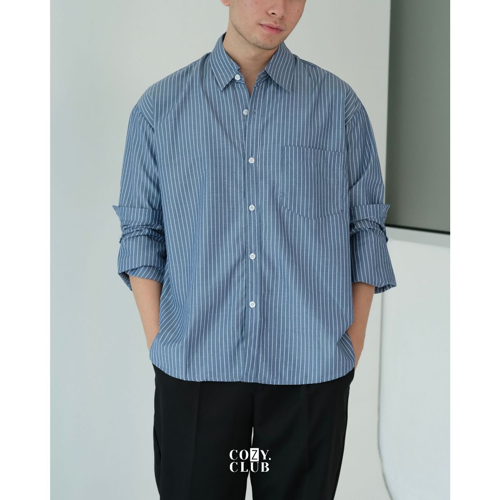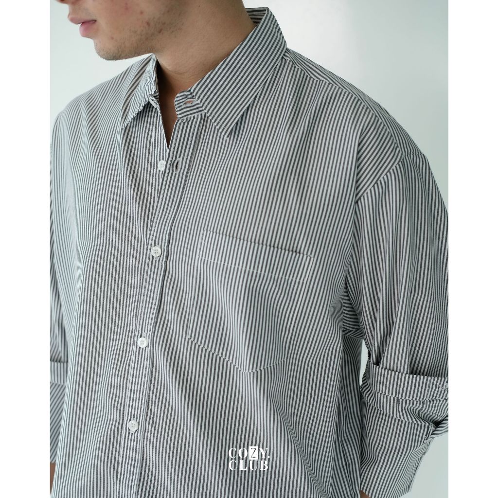 COZYCLUB Stripe Oversized Longsleeve Shirt | Kemeja Stripe Oversize Pria Lengan Panjang | 301