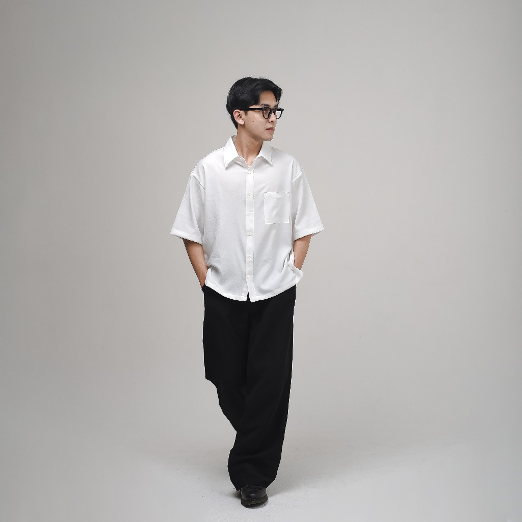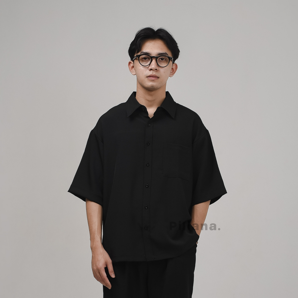 Piliana Kemeja Oversize Lengan Pendek Pria Black Kemeja Boxy