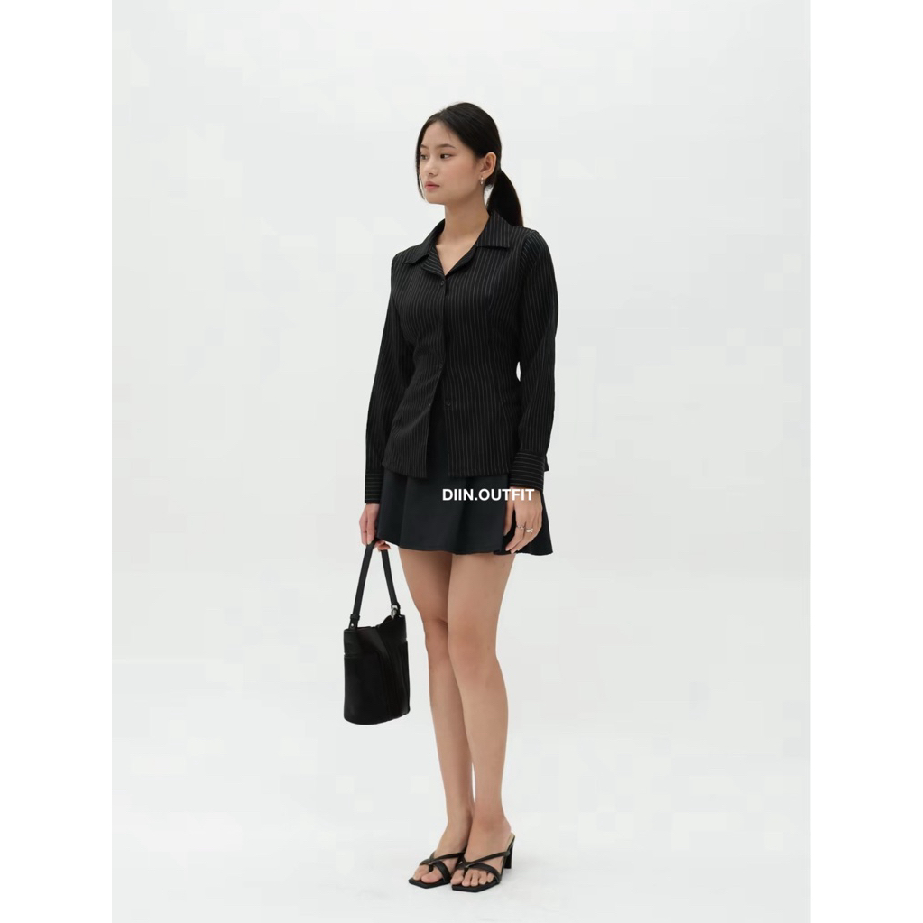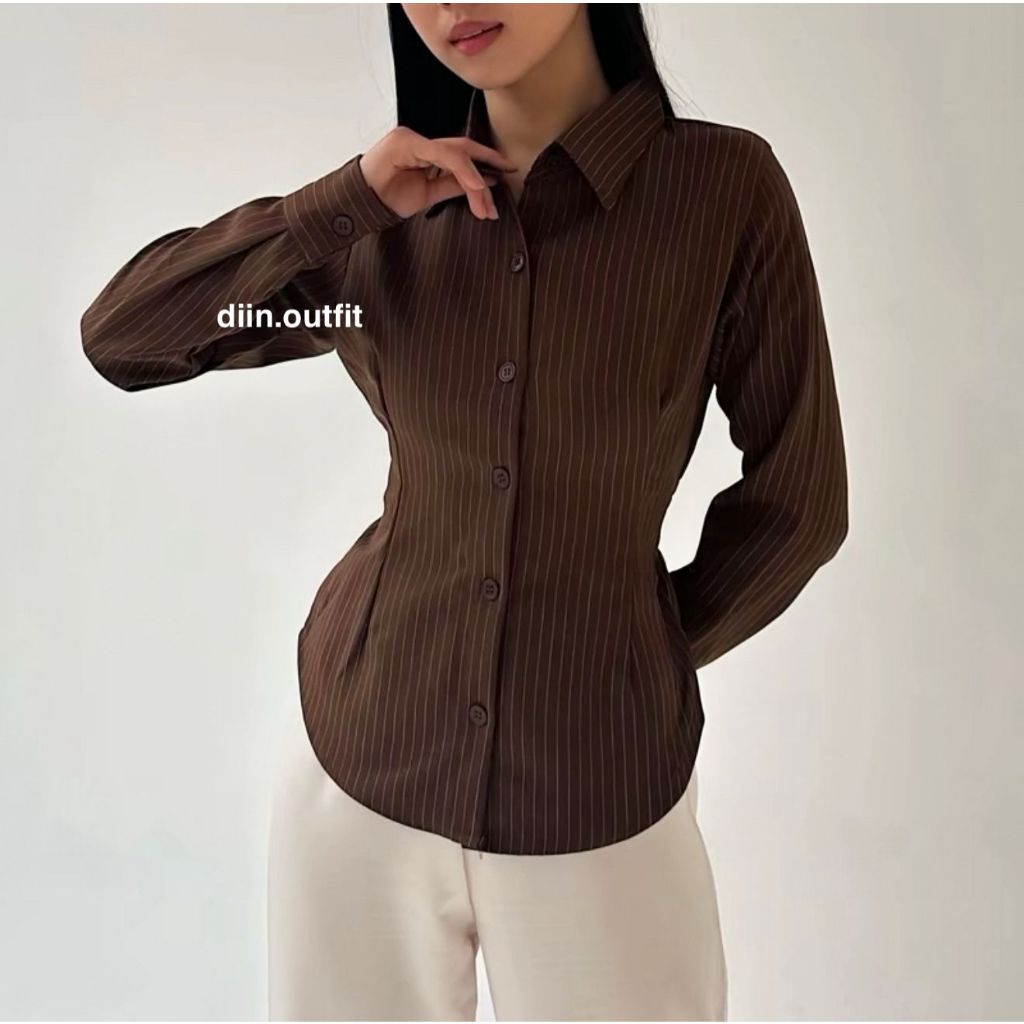 Lusy Shirt Kemeja Stripe Fitted - Kemeja Wanita Garis Lengan Panjang Fit Body - Kemeja Kerja Kantor