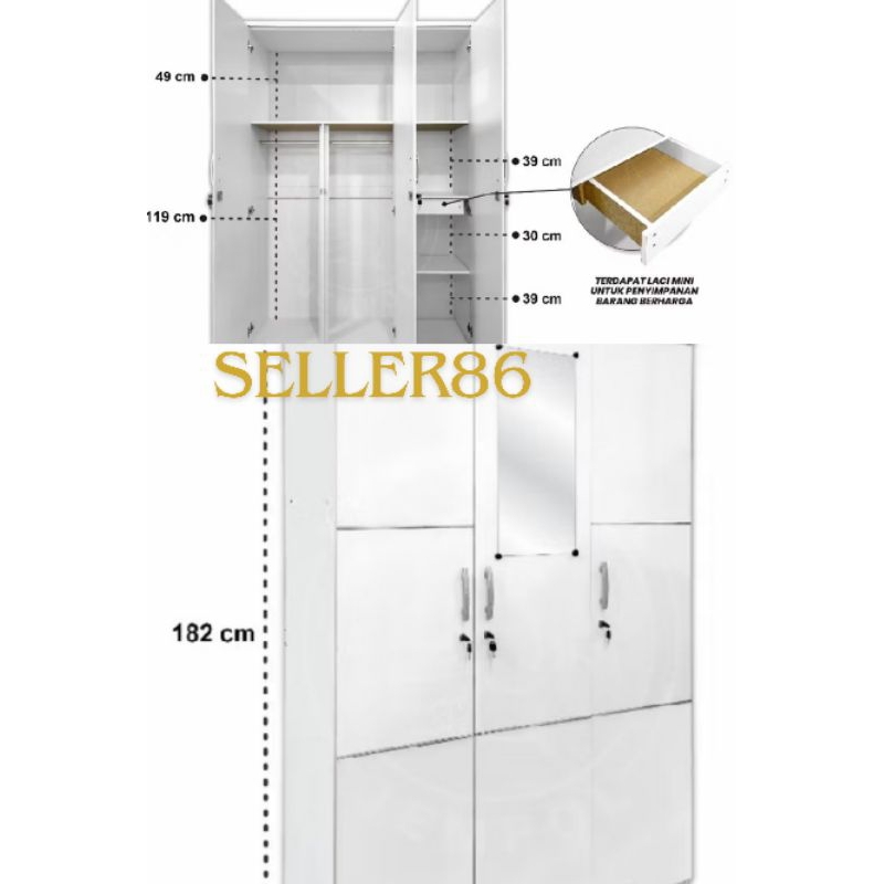 LEMARI PAKAIAN 3 PINTU FULL PUTIH new LEMARI PAKAIAN 3 PINTU GAMIS LEMARI PAKAIAN 3 PINTU PUTIH
