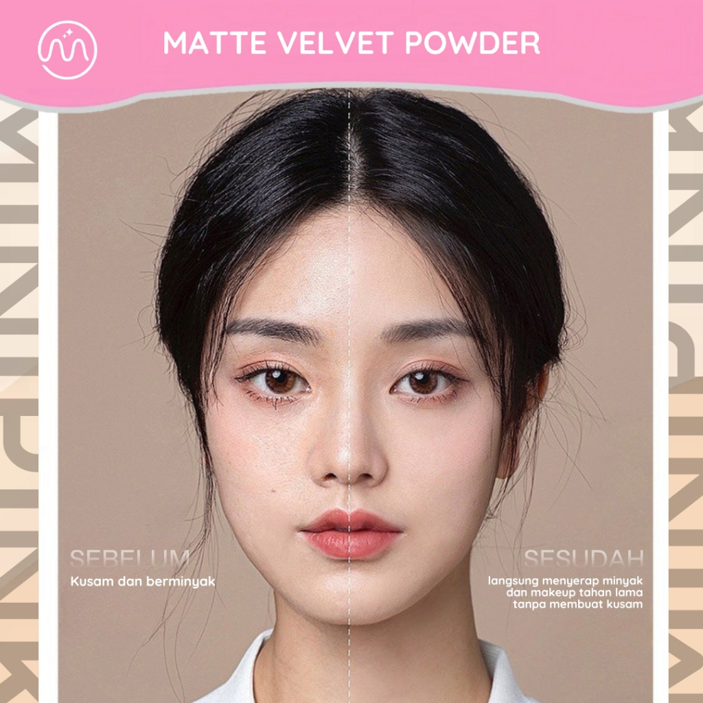 MINIPINK Compact wder Matte Velvet 3 Warna Natural Finish Foundation Makeup Bedak Padat MP037