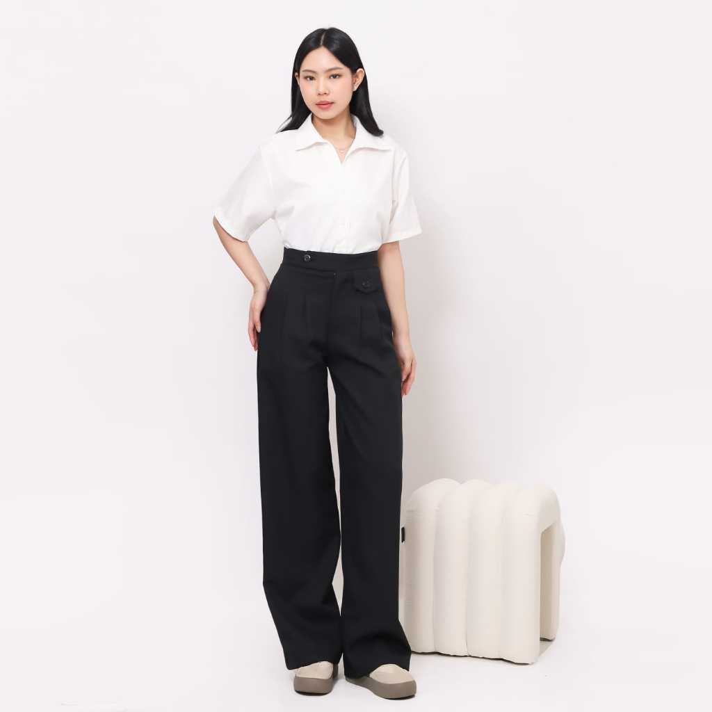 AMARAVE - Celana Panjang Wanita Highwaist Celana Bahan Wanita Kerja Kulot Wanita Kantor Bahan Woll