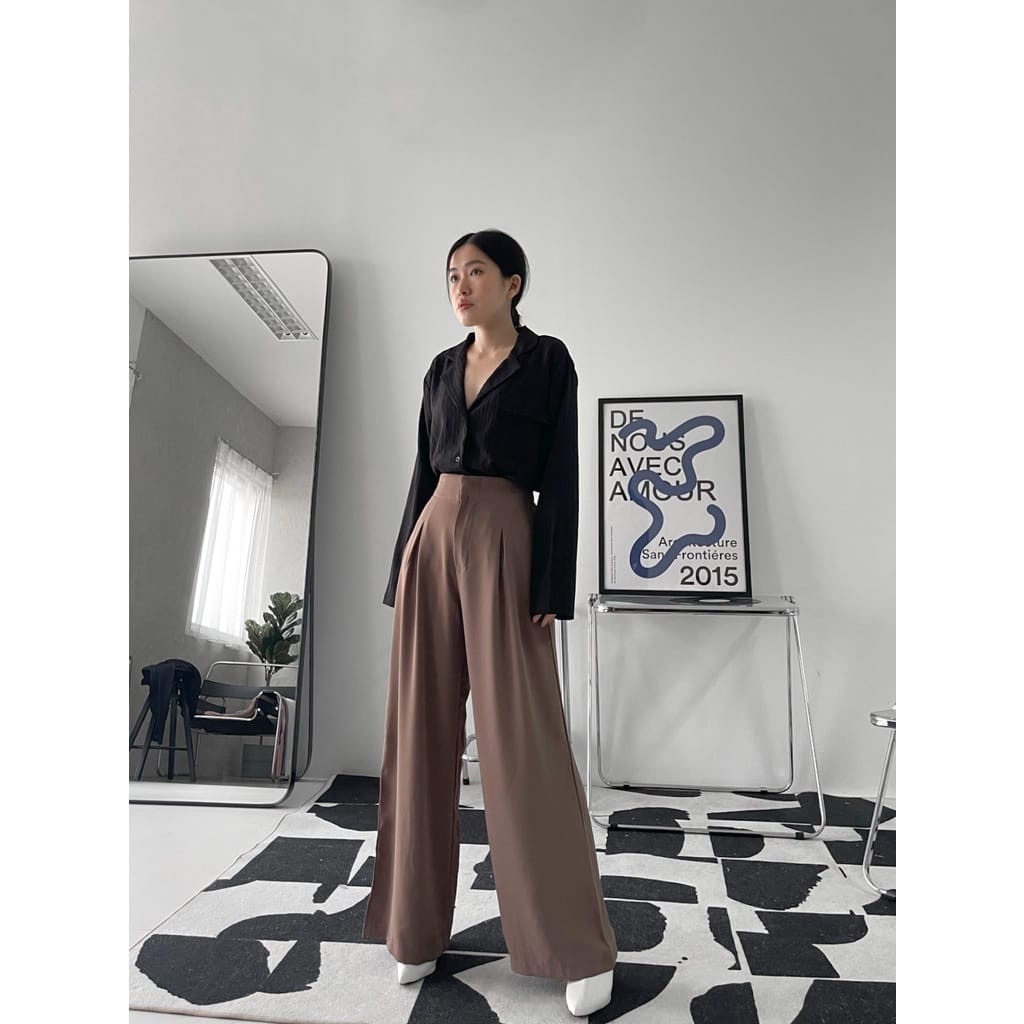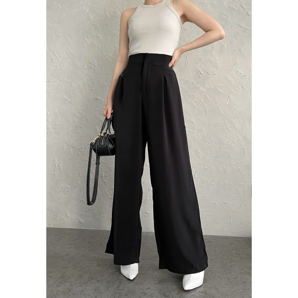 Vallina - Loose Pants Highwaist Cullote Premium Bawahan Celana Kulot Palazo Basic Kerja Kantor Wanita Korean Style
