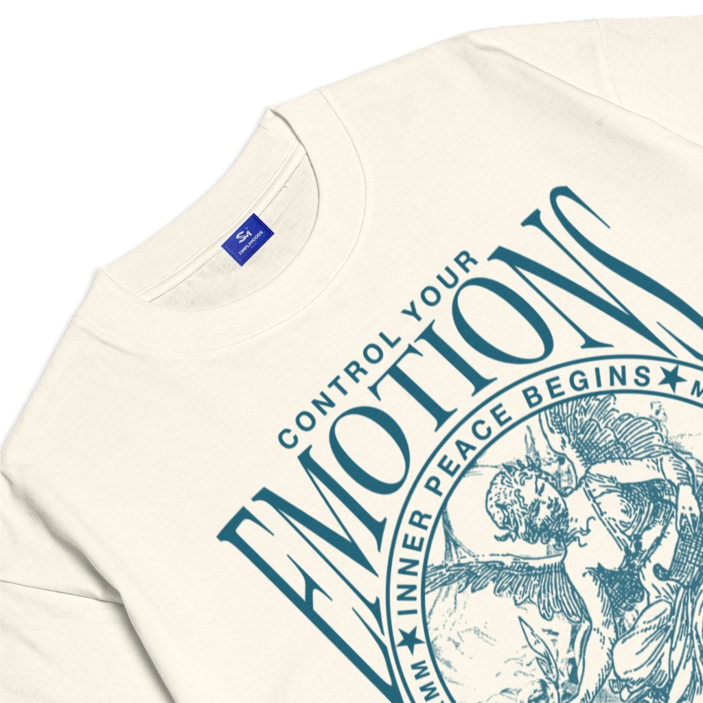Simplimoods - Kaos Boxy Tee Fit Oversize Tshirt Emotions Cream Ivory Katun Combed 24s Uni
