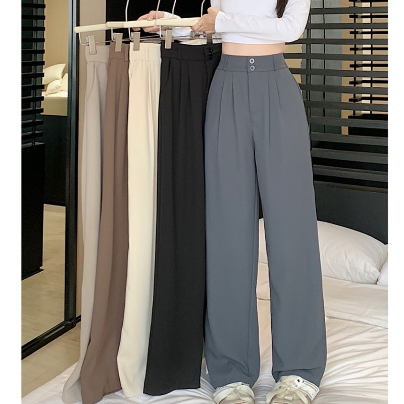 Celana Highwaist Loose Pants Trousers Celana Kerja Wanita Kantor Anti Kusut - Celana Kulot Wanita