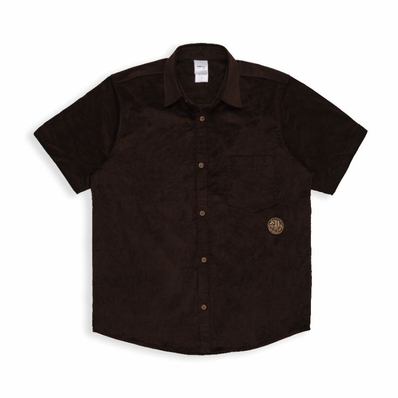 Easternwood Kemeja Corduroy Lengan Pendek los Coklat Brown Uni