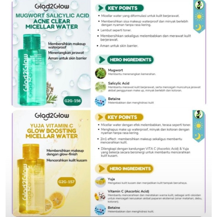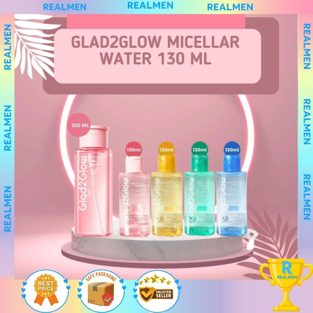 Glad2Glow Micellar Water - 130mL | Mugwort Salicylic Acid Acne | Yuja Vitamin C | Cherry Blossom