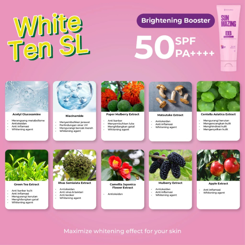 KM GLAMAZING Sunscreen SPF 50 PA++++ 50ml Brightening Agent Anti Blue Light Pencerah Wajah XX415