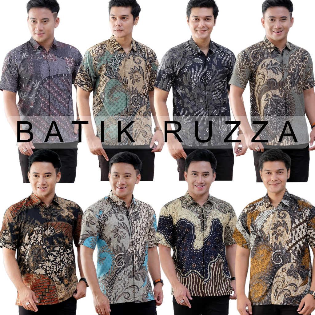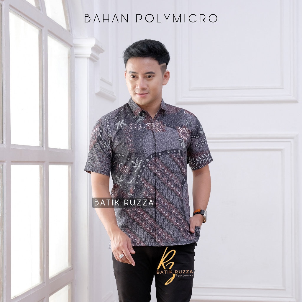 Kemeja Batik Pria Lengan Pendek Motif Manggar Abu Sage Cowok Laki Dewasa Size M L XL XXL RUZZA