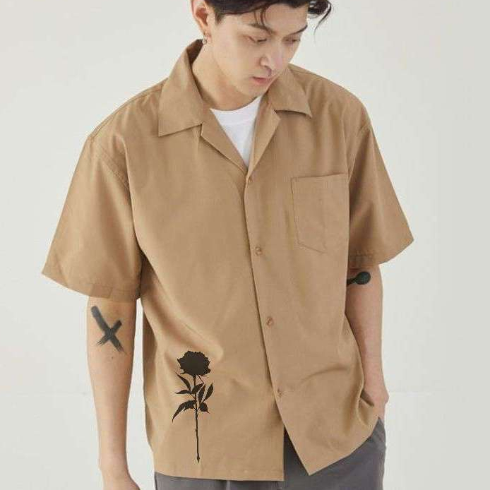 Kemeja Vintage Pria Lengan Pendek Kemeja los Pria Dengan Motif Dark Roses Korean Style Terbaru Kemeja casual