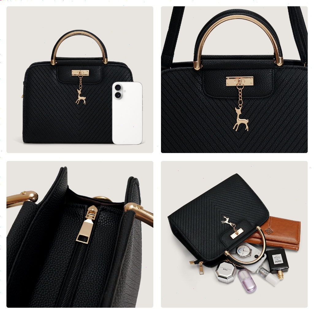 Tas Wanita Elegan RAINSMORE – Fashion Handbag Korea Style untuk Kerja & Hangout, Kulit Premium + Charm Deer Aksesori