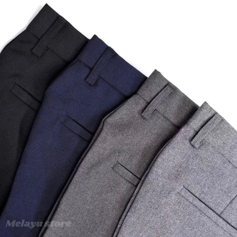 CELANA BAHAN KERJA FORMAL KANTOR PANJANG HITAM DASAR PRIA SLIMFIT