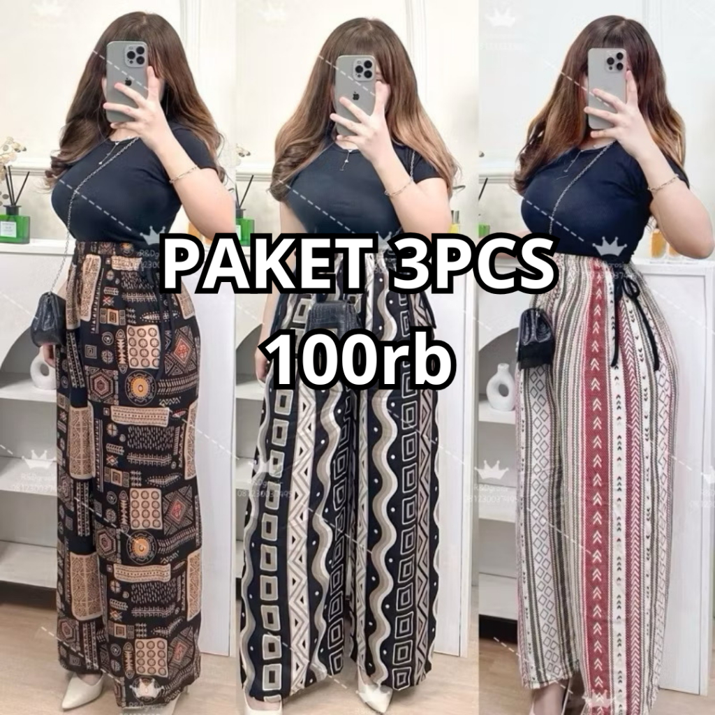 FZRCK Official Paket Murah Isi 3 Pcs Celana Kulot Hommy Part 2 KALLYOUTFIT Kulot Wanita Rayon Viscose Premium Simple Elegant Mewah Motif Rayon Terlaris