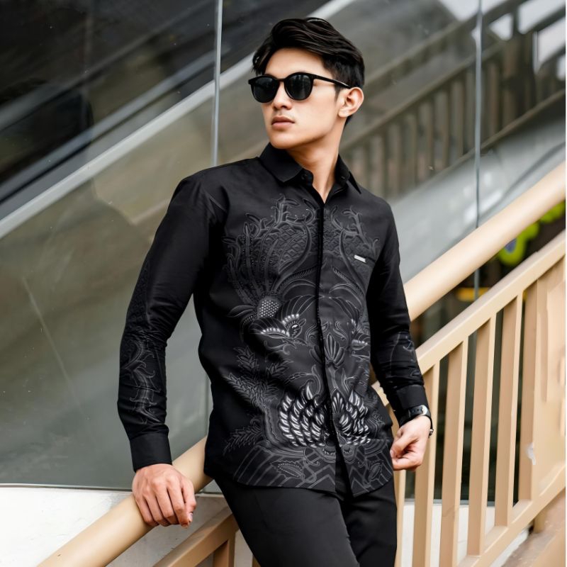 Aima Batik Landak Hitam Kemeja Batik Pria Lengan Panjang Baju Batik Laskala Size M L XL XXL