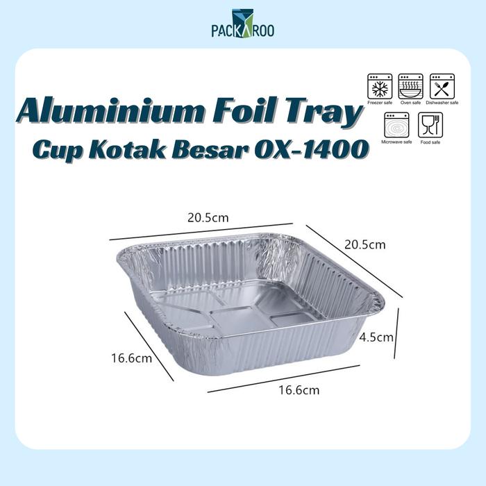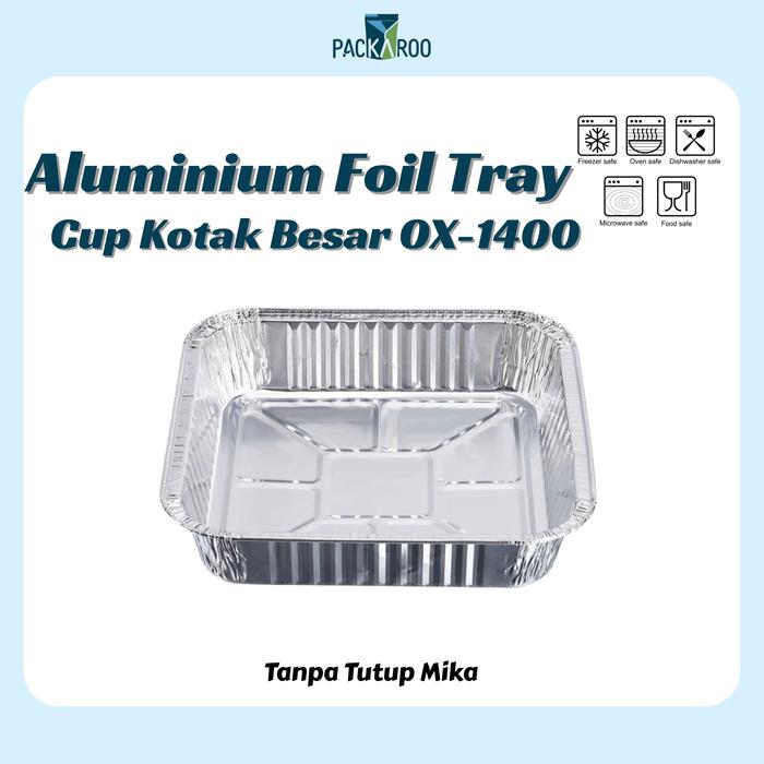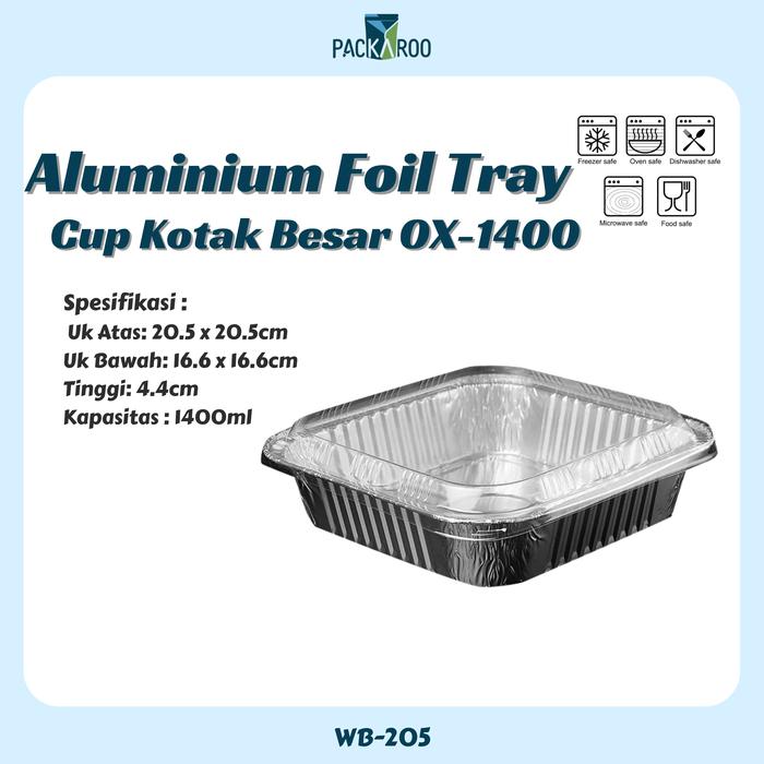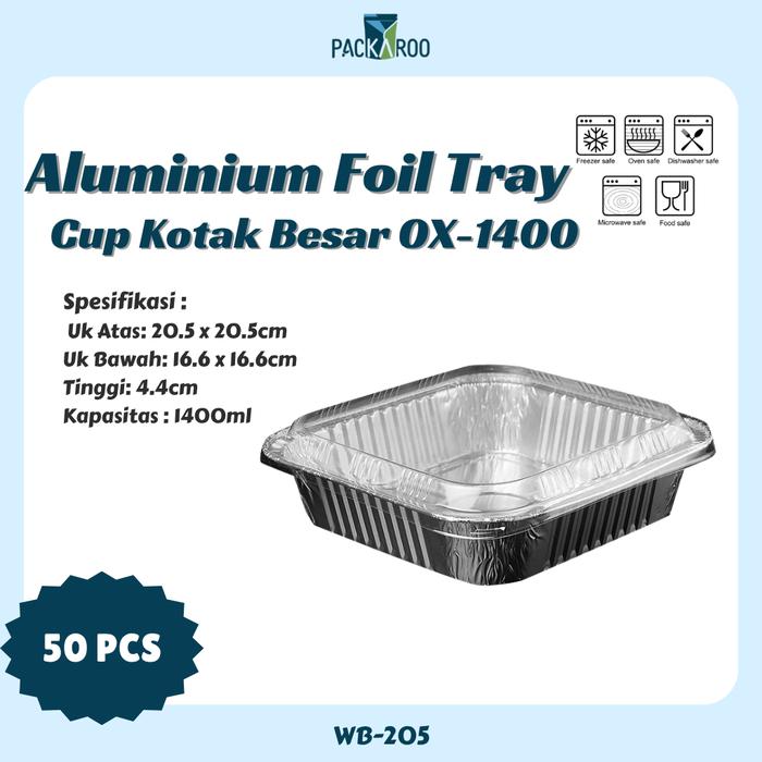 Aluminium Foil Tray Cup Kotak Besar OX-1400 + Tutup 50 Pcs 1400ml Food Grade TERMURAH - Wadah Saja