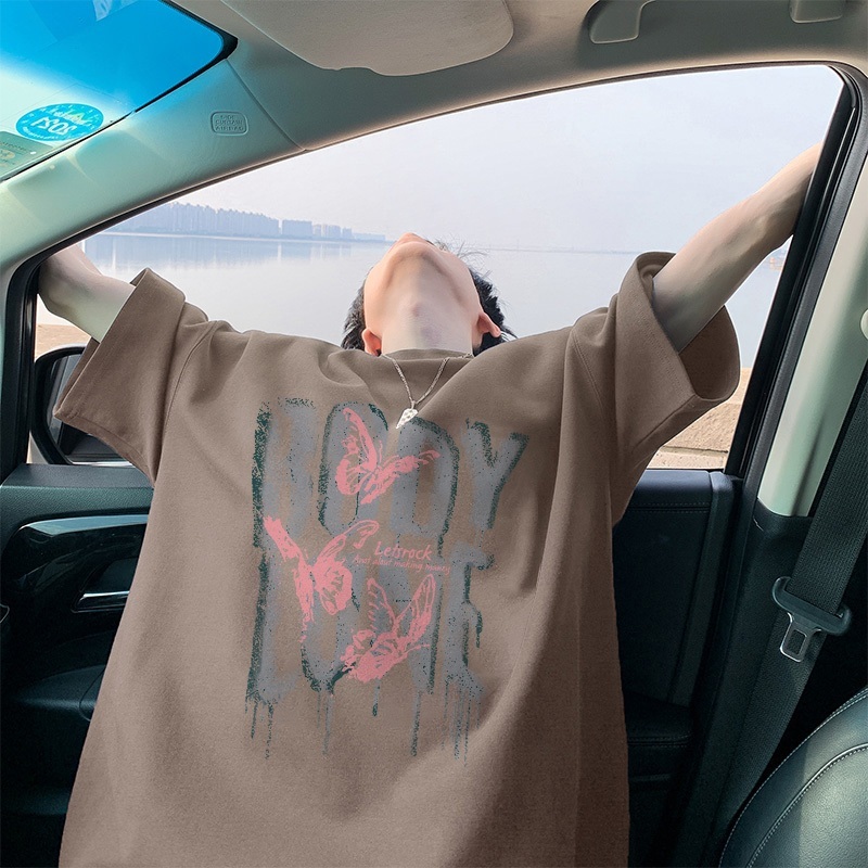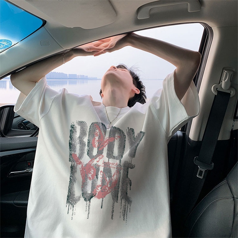 AUZY Kaos Pria Alphabet Butterfly Baju Distro Original 100 PERSEN Retro Style Tshirt Longgar Kaos Imrt