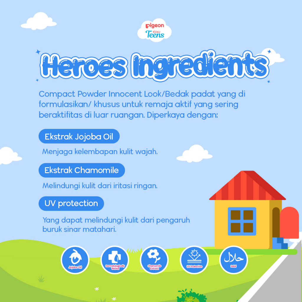 [YEAR END SALE] PIGEON TEENS COMPACT WDER+UV Protection 14gr | Bedak Padat Remaja | Natural Finish Look| Hyallergenic