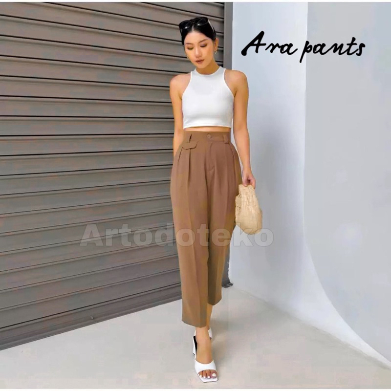 Ara Basic Pants Highwaist Celana Baggy Angkle Pants Celana Kantor Loose Pants