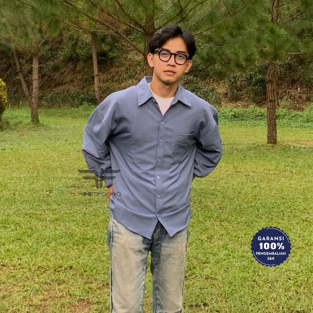 RoomFazza Kemeja Lengan Panjang Oversized Pria Kemeja Kasual Kemeja los Kemeja Pria Kemeja Oversize