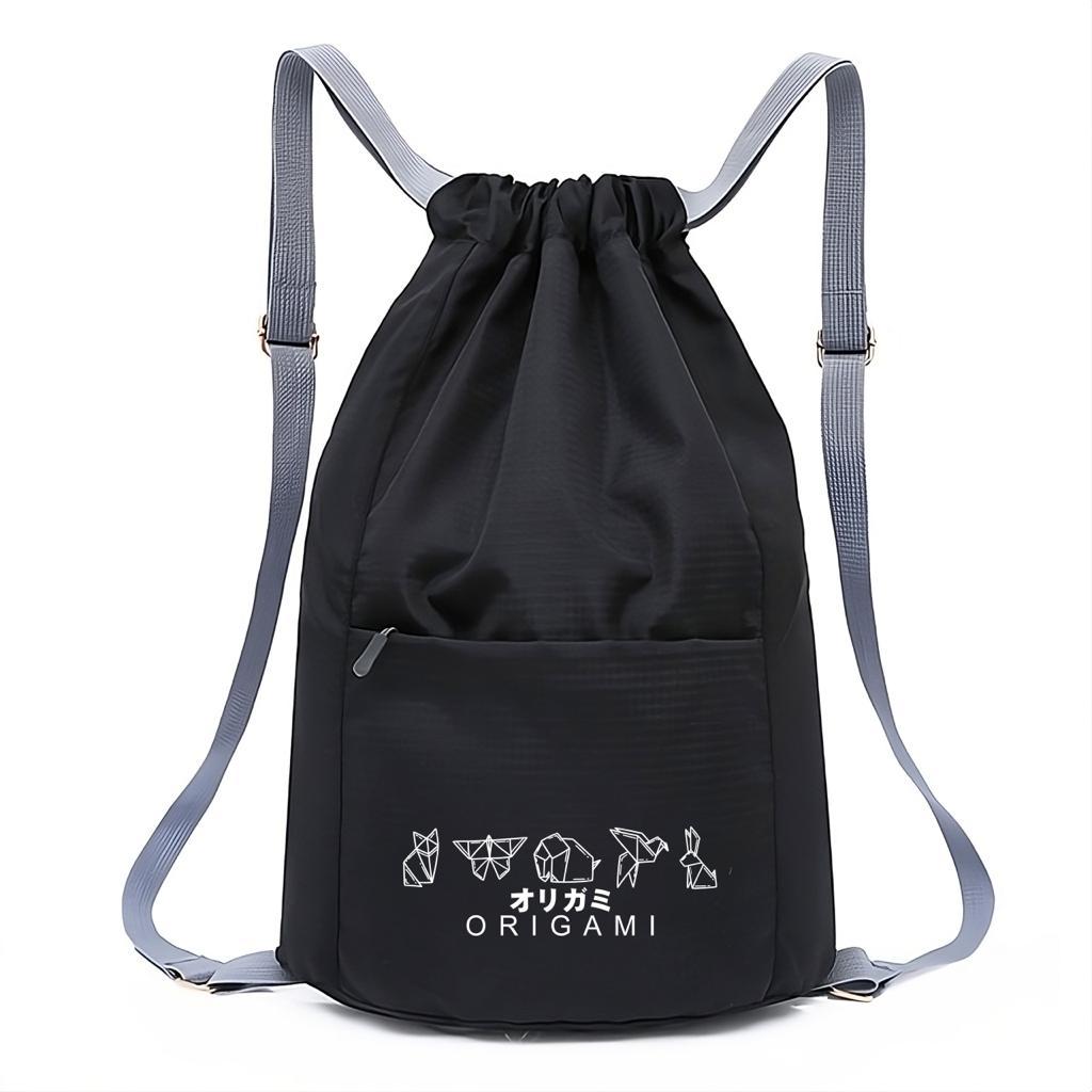 FITRAS - Tas Ransel Pria Simple Font Origami Jepang String bag Waterproff Warna Hitam