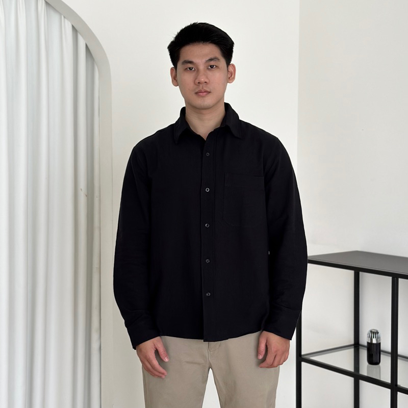 COZYCLUB Long Sleeve Linen Shirt | Kemeja los Linen Pria Lengan Panjang | 91