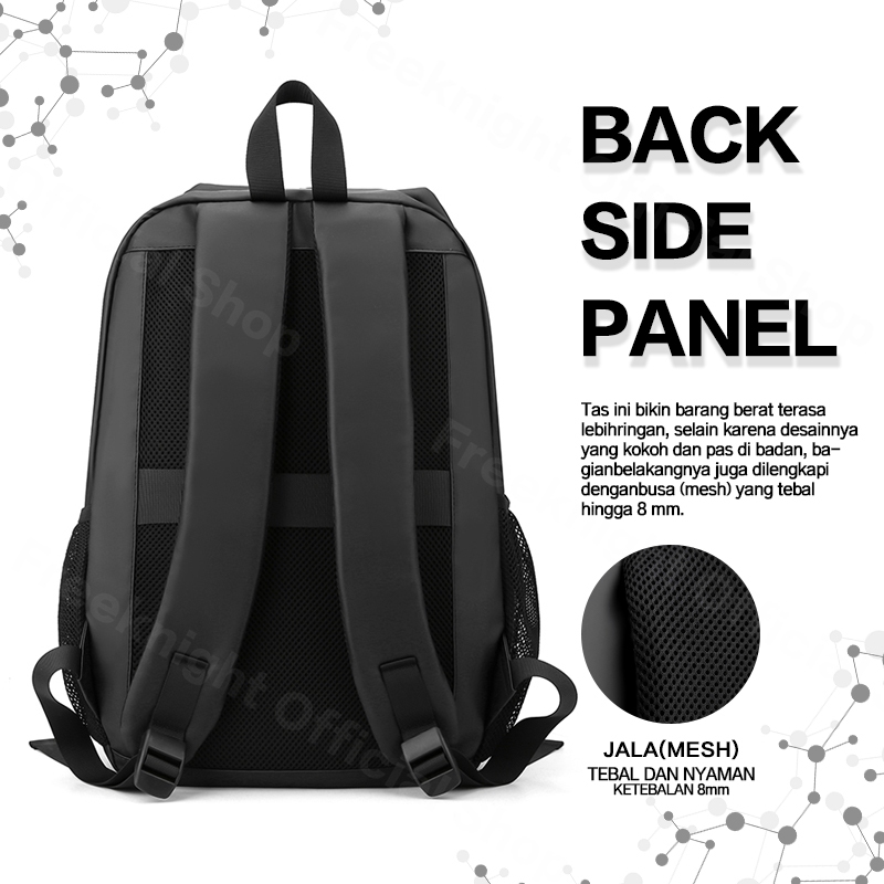Freeknight Backpack Anti Air Tas Sekolah Kuliah los Pria Ransel Laptop Trendy Hitam TR708