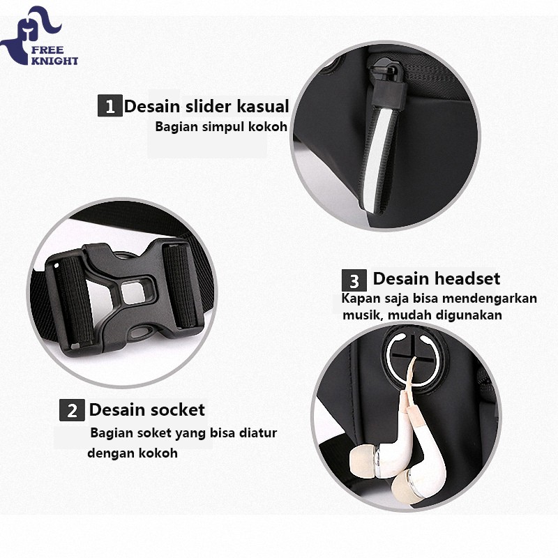 Freeknight Anti Air Waist Bag Waterproof Volker Sling Bag Pria Anti Air Waist Bag Pria Tas Selempang Multifungsi Earphone Hole Sling Bag Pria TS214