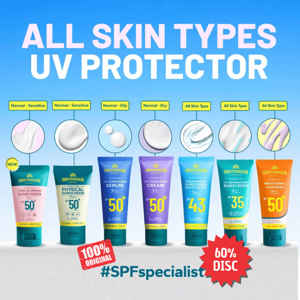 AMATERASUN All Skin Type Sunscreen REAL SPF 50+ Certified | Waterbarrier | Cream | Serum | Brightening | Physical | re Blurring | Transparent | Body