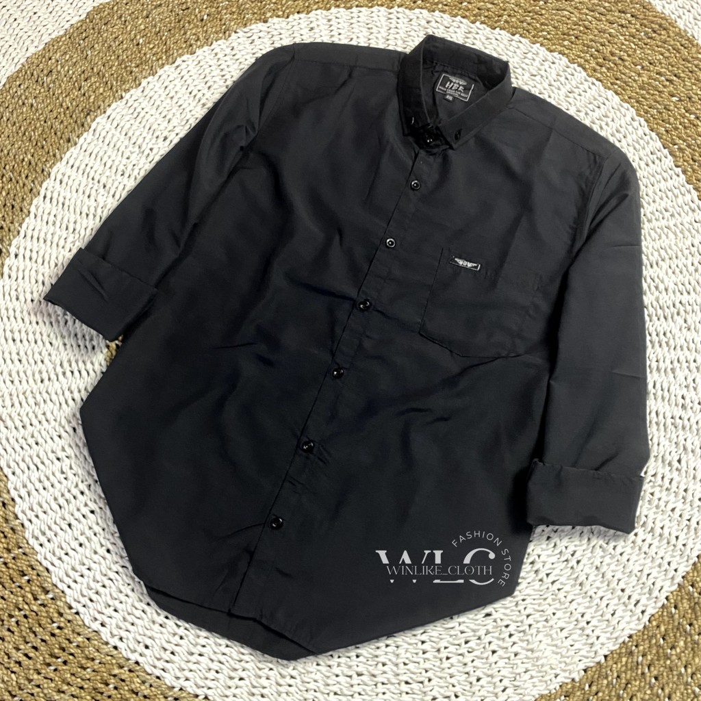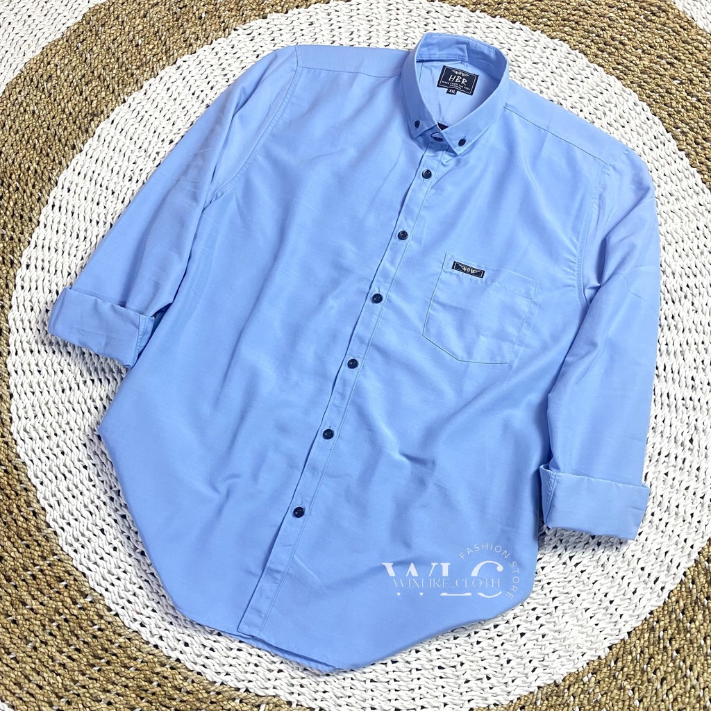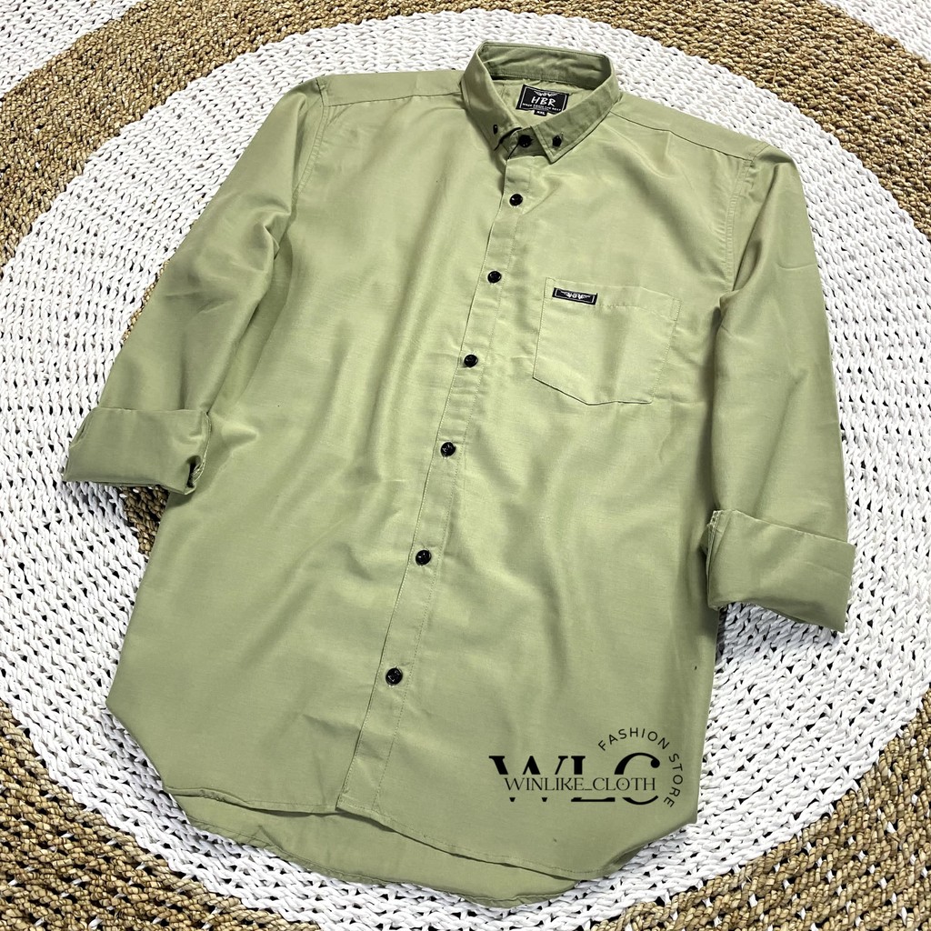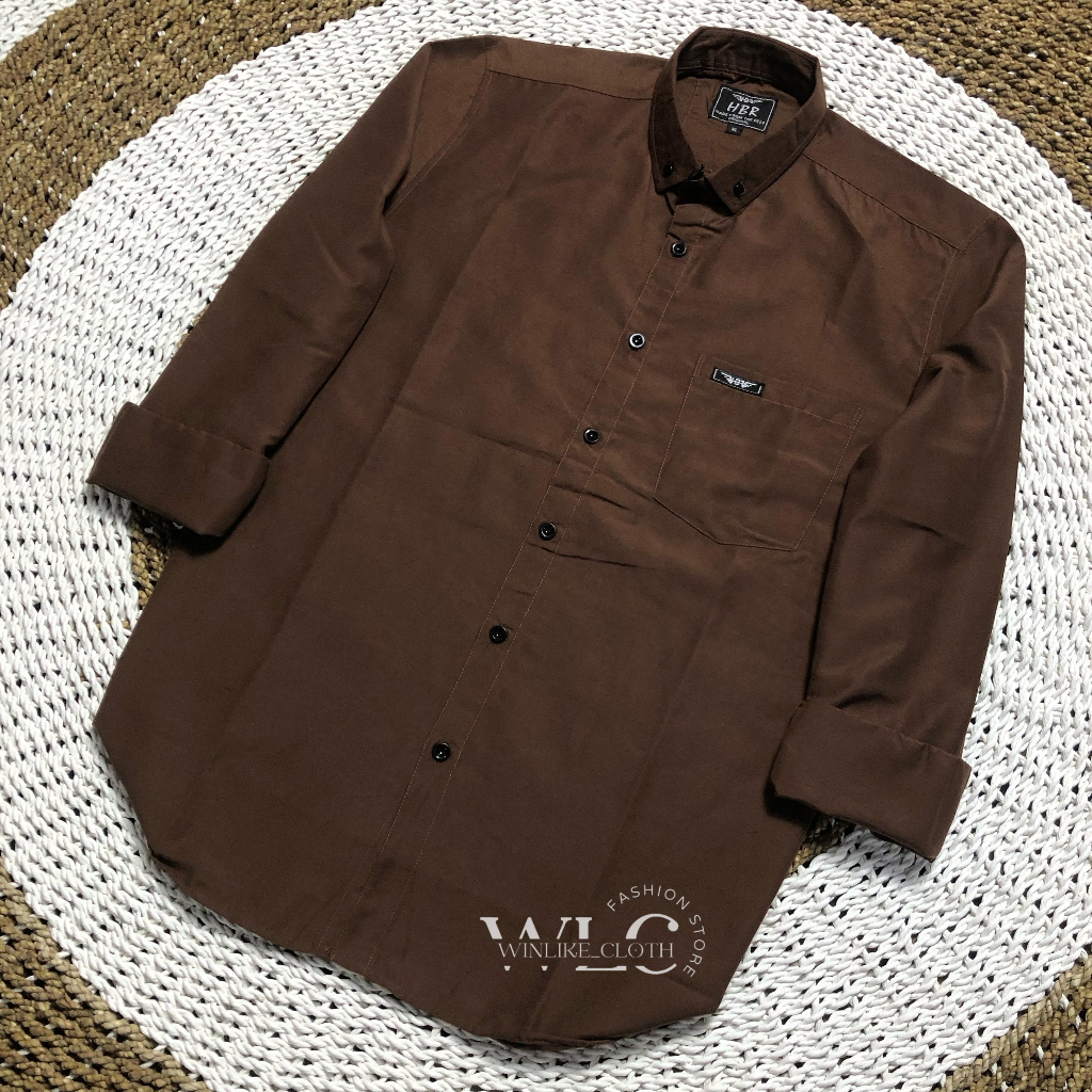 Kemeja los Panjang Pria los Katun Santai Warna Mahogani Size M L XL XXL Mahogany