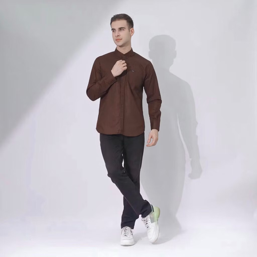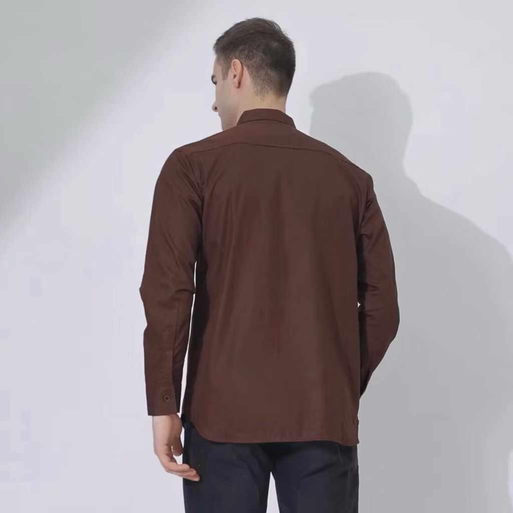 Kemeja los Coklat Mahogany Pria Lengan Panjang Slimfit Kemeja Hitam Kemeja Putih Kemeja Casual
