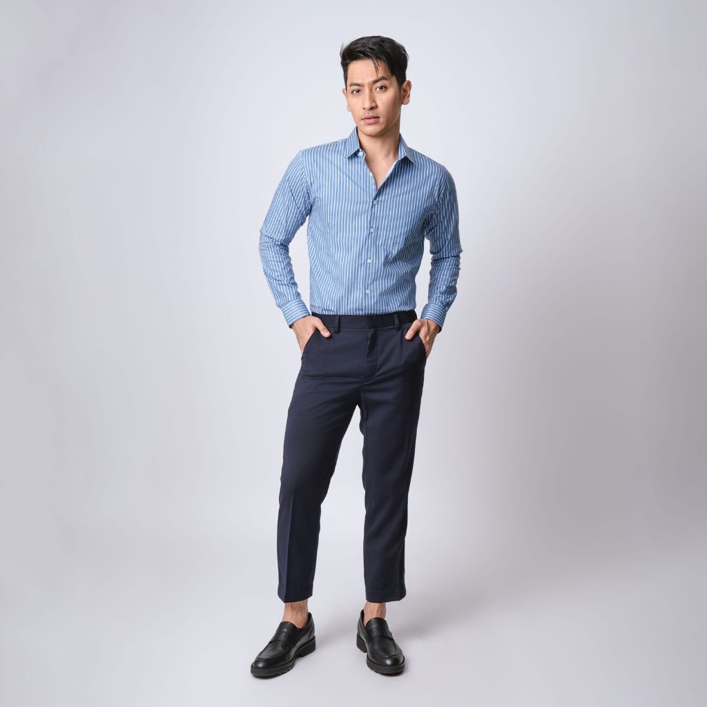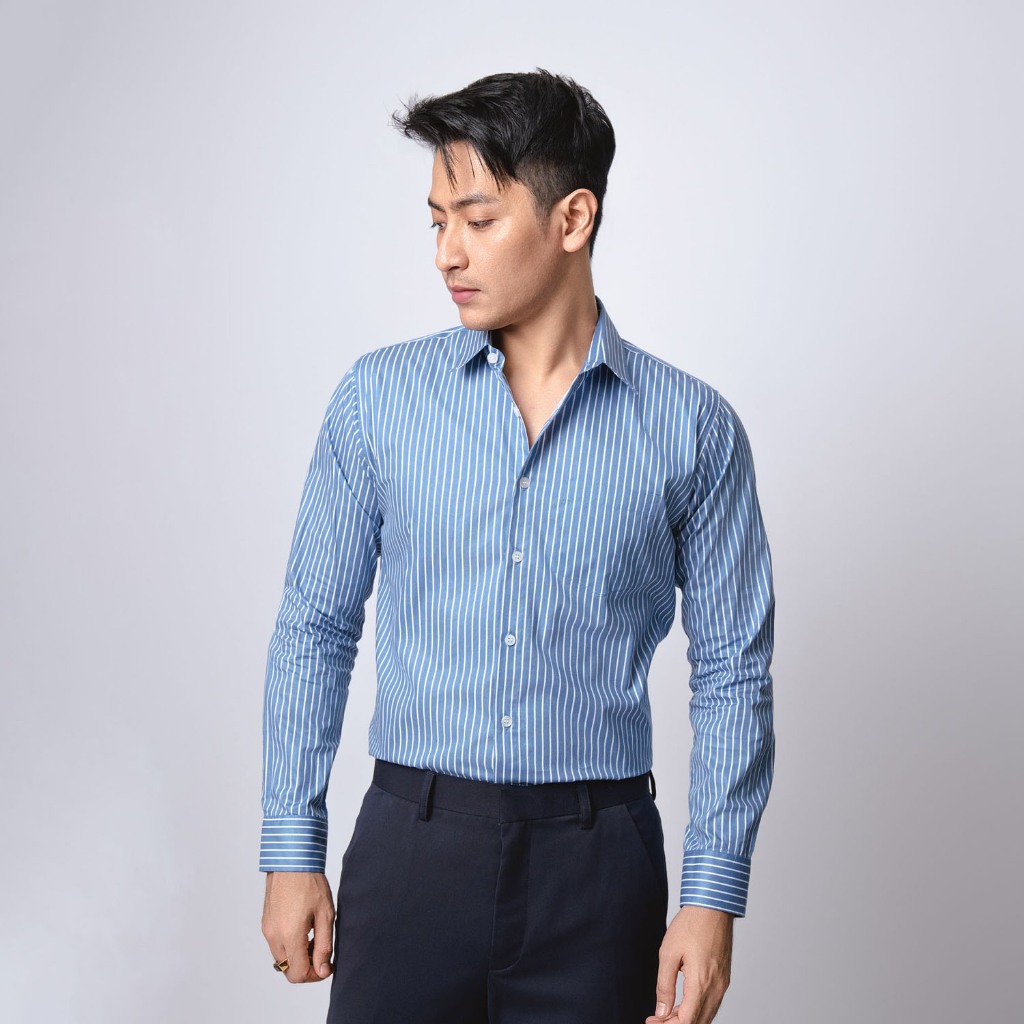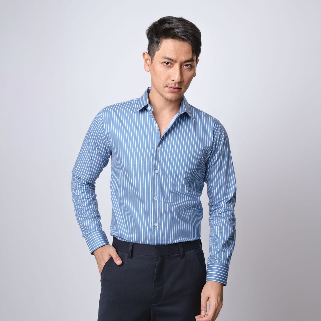 VENGOZ Kemeja Pria Slim Fit - Hugo Stripe Shirt Blue Sky LS