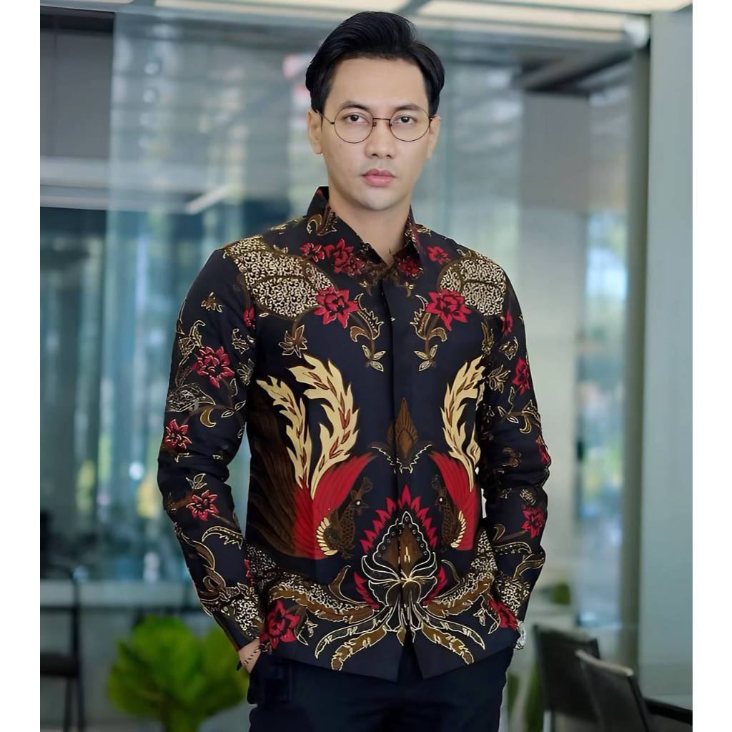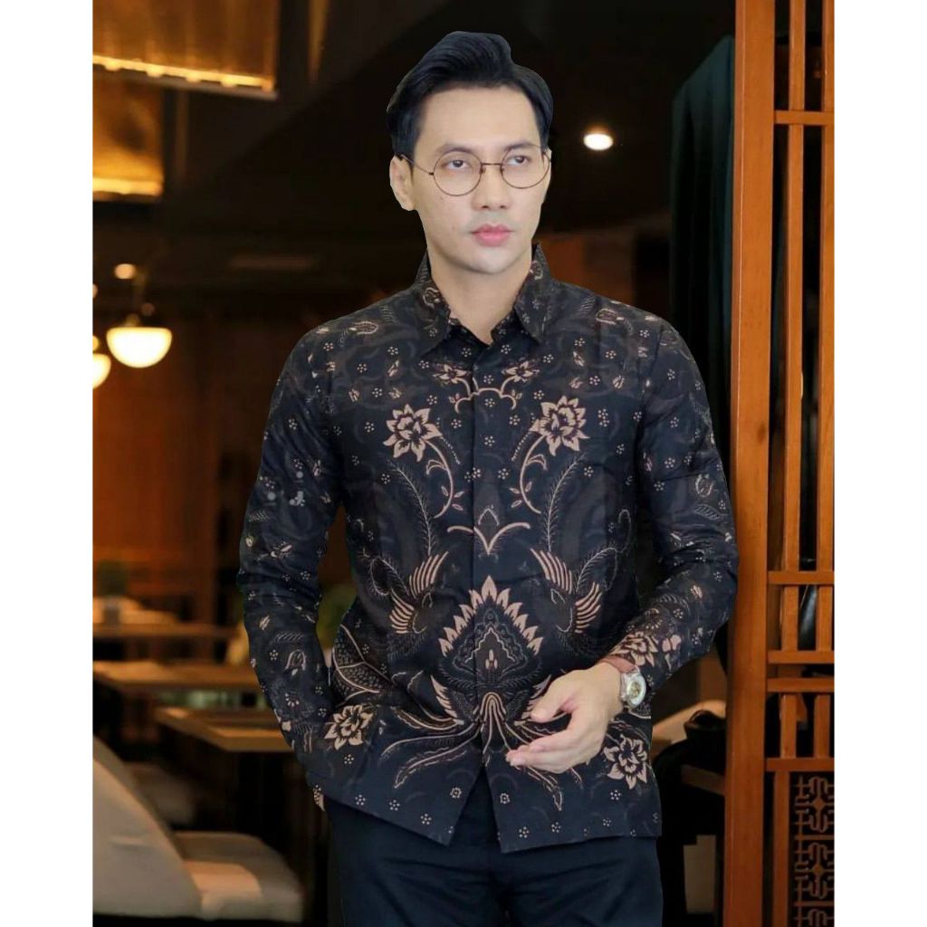 Kemeja Batik Pria Modern Hitam Elegan – Baju Batik Lengan Panjang Fashion Formal & Casual Kantor