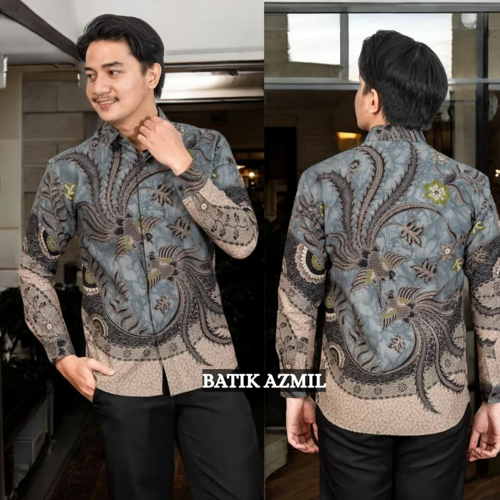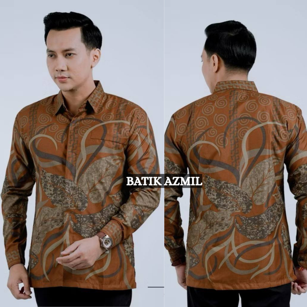 Batik Pria Lengan Panjang BATIK AZMIL motif KERATONAN Kode 003 size M L XL XXL Reguler
