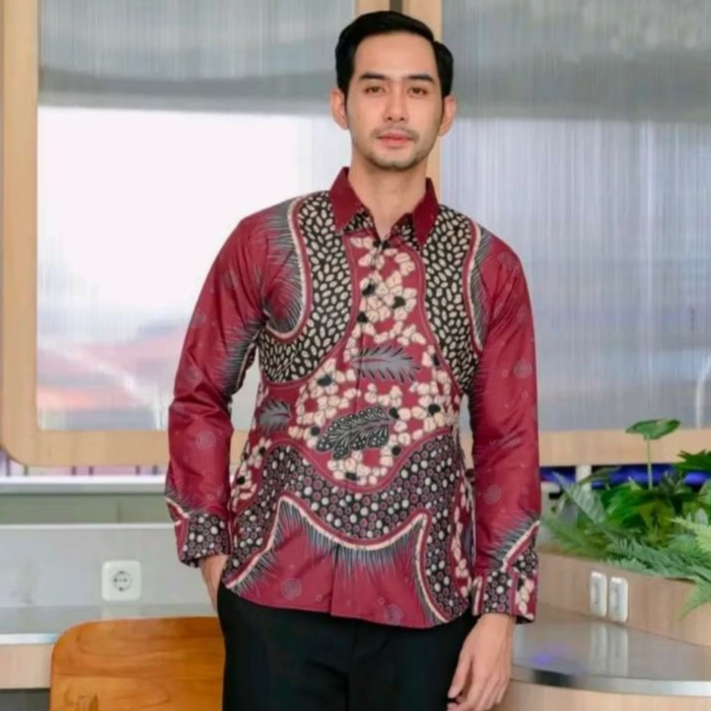Batik Pria Lengan Panjang BATIK AZMIL HRB026 motif KERATONAN Kode 002 size M L XL XXL