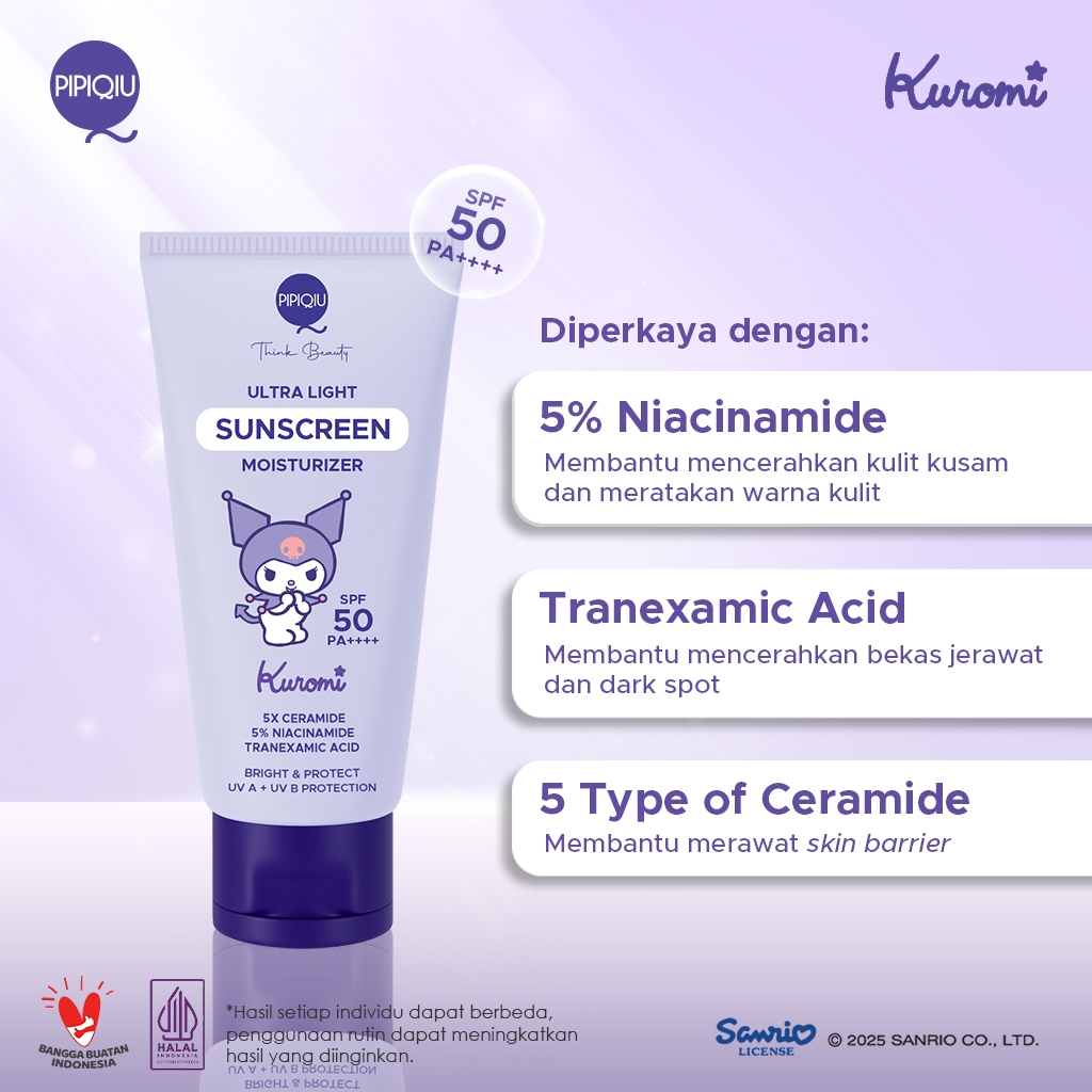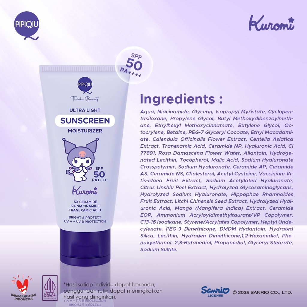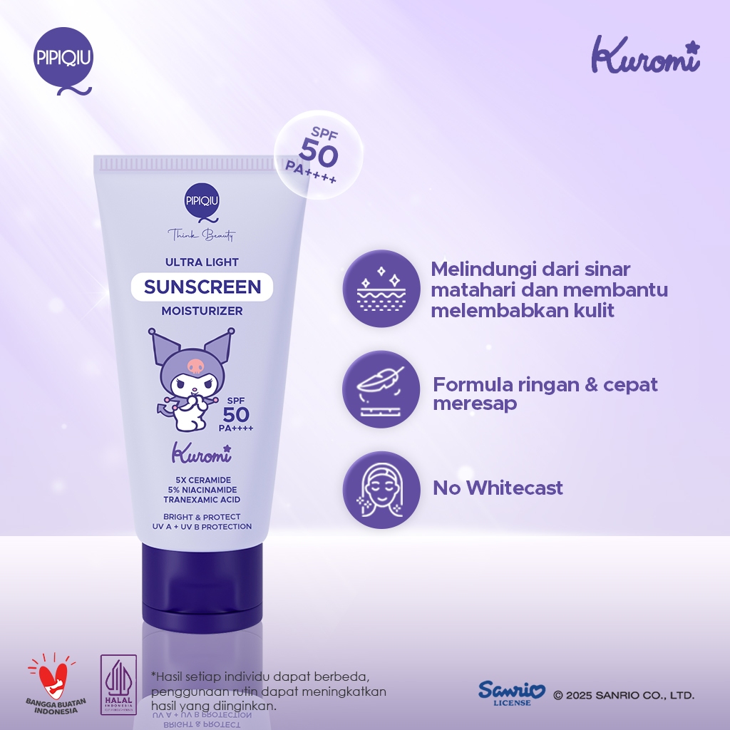 Pipiqiu Ultra Light Sunscreen Moisturizer Bright & Protect SPF50PA++++ Kuromi Edt. (PSKU 30ML)