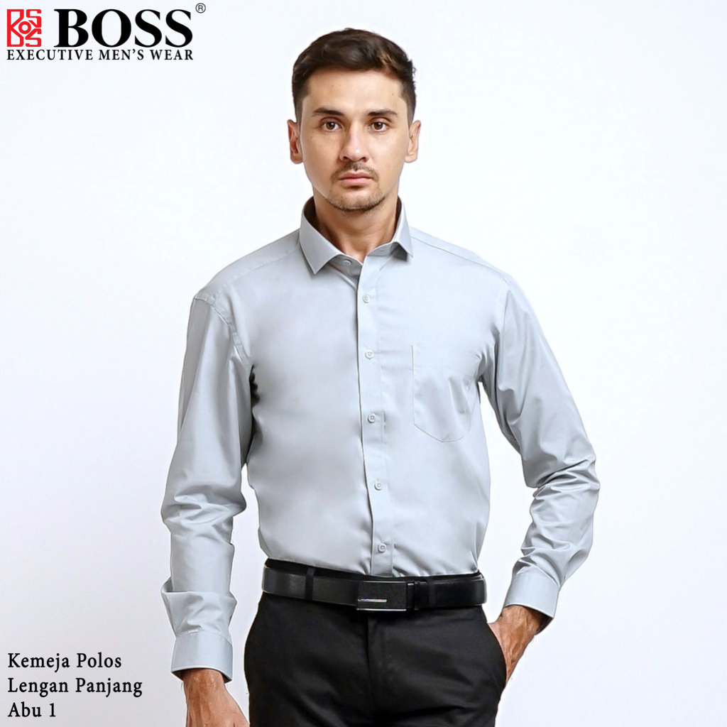 BOSS Kemeja los Pria Lengan Panjang Regular Fit Abu